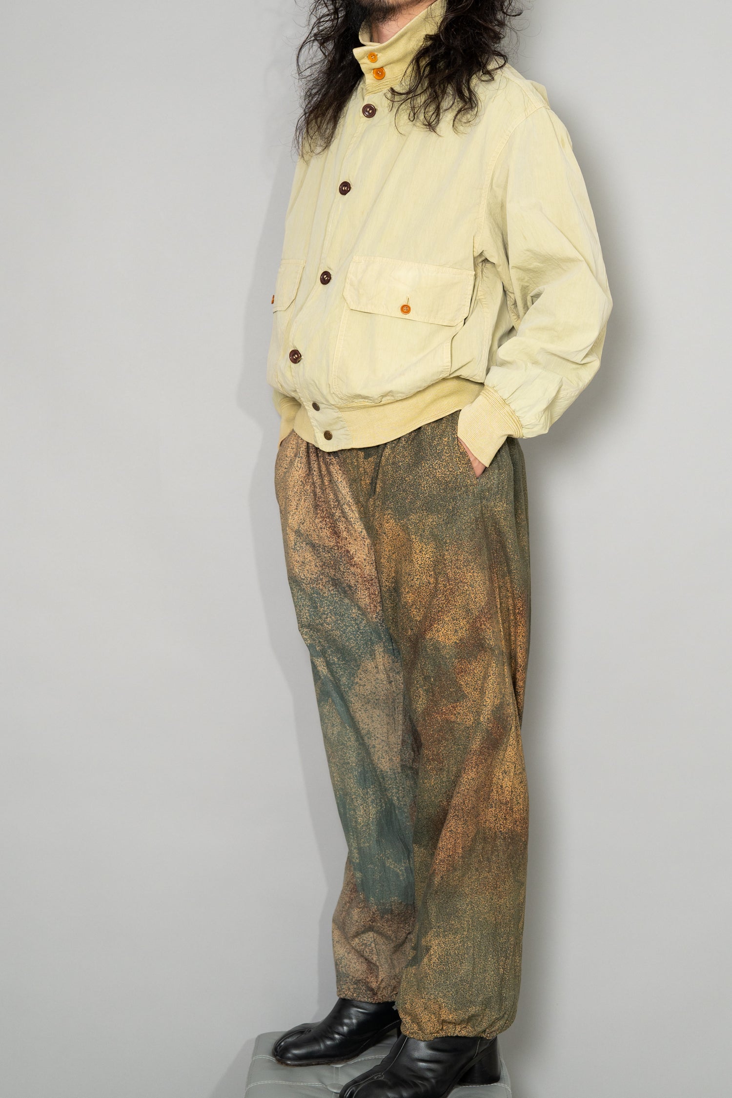 ファッションの文脈においても、このユーゴスラビア軍マイクロドットカモは極めて重要な位置付けにあります。マルタン・マルジェラによるミリタリーウェアの再構築、ヘルムート・ラングの都市型ユニフォーム思想、C.P. CompanyやStone Islandが展開してきた機能素材と軍装ディテールの融合といった流れの中で、この種の抽象的かつ環境同化型の迷彩は、多くのデザイナーにインスピレーションを与えてきました。特に現代のテックウェアやアウトドアミックススタイルに見られる淡色カモやマーブル調のテキスタイル表現は、この時代のユーゴスラビア軍迷彩と思想的に強く連続しています。