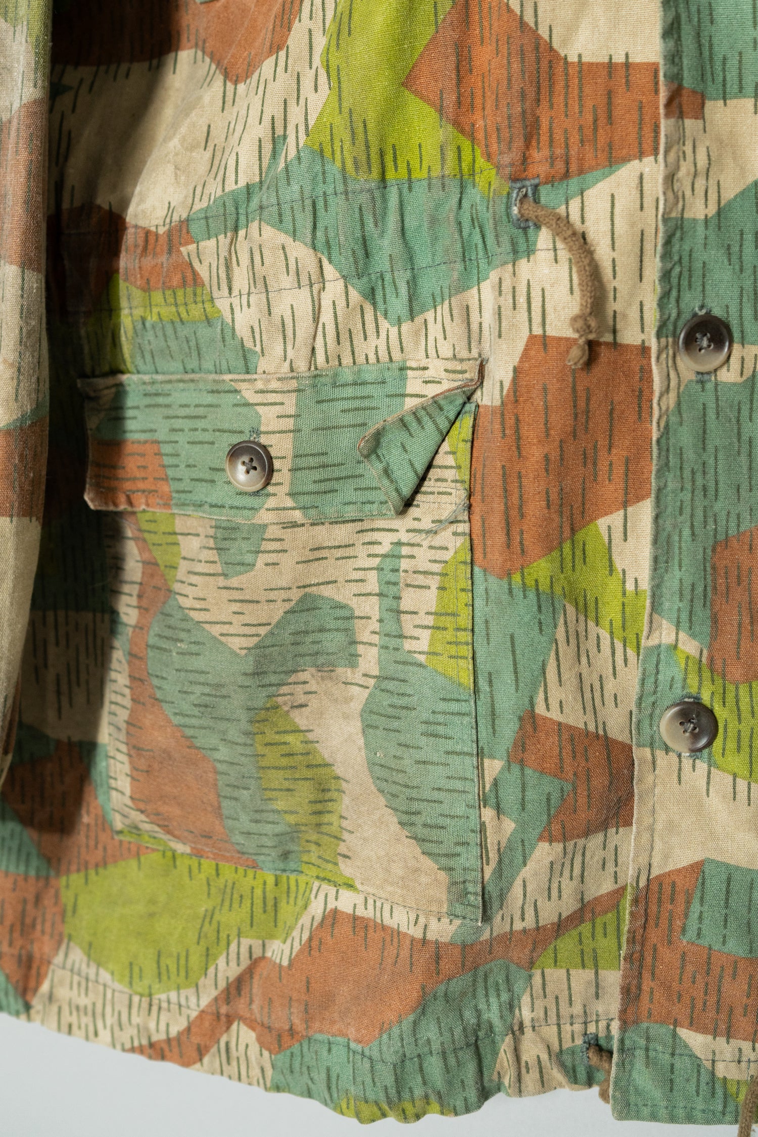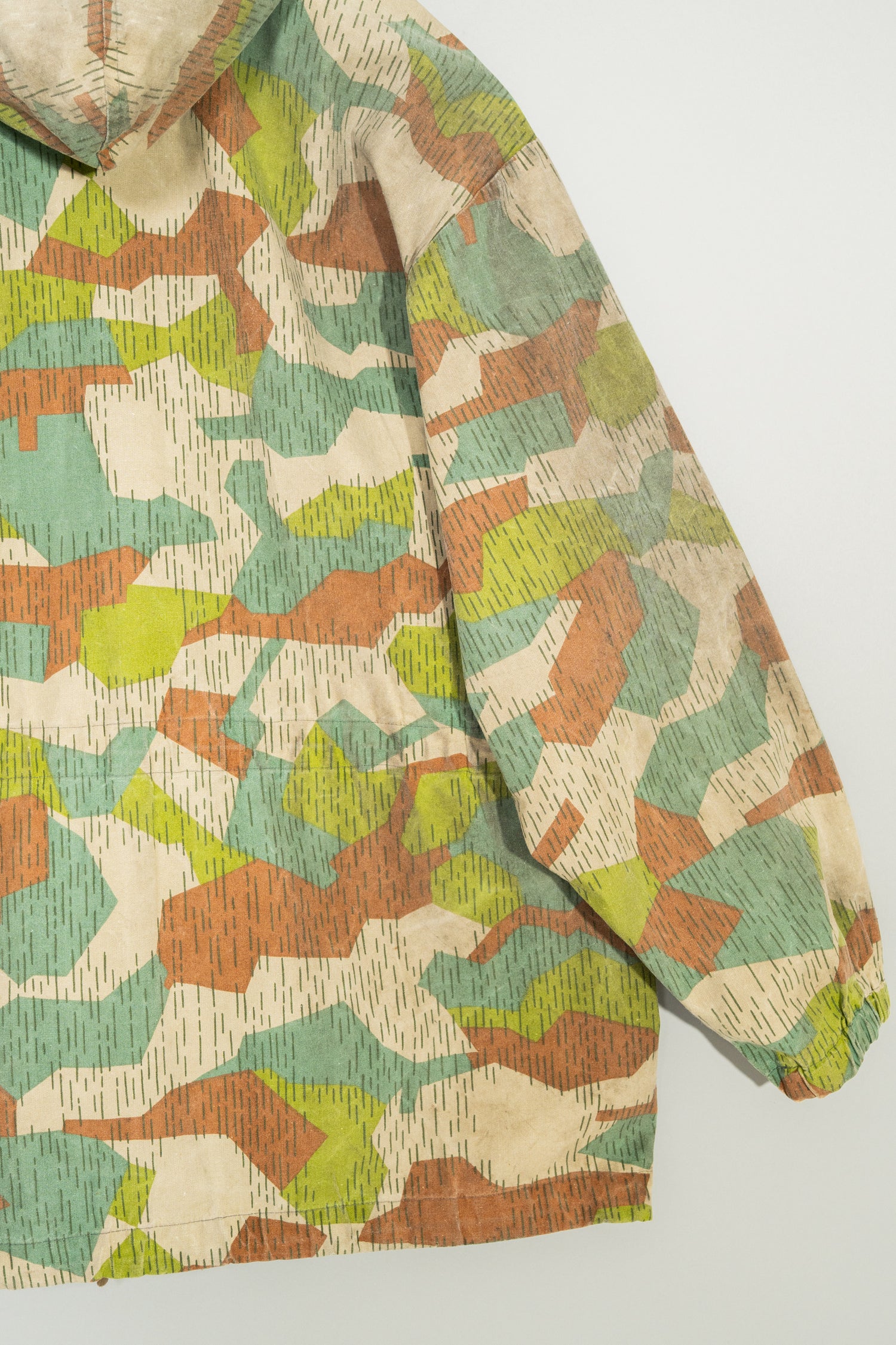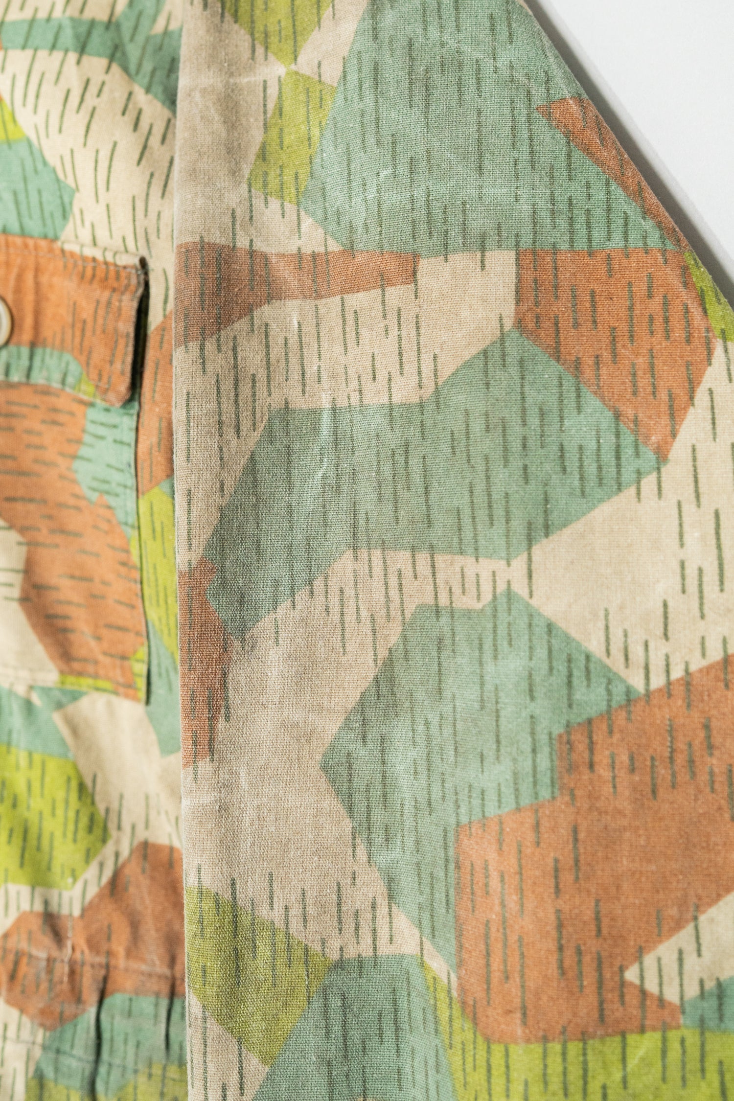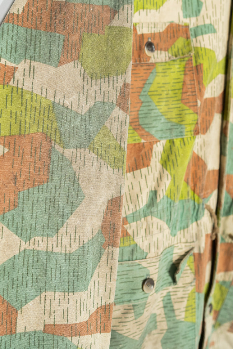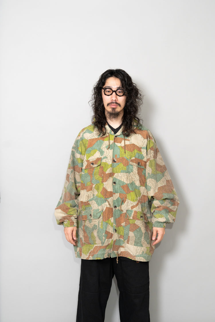 本作のスプリンターカモフラージュは、ドイツ軍の迷彩やフランス軍、さらには現代のデザイナーズブランドにも影響を与えた系譜の中に位置付けることができます。実際に、Maison MargielaやHelmut Lang、近年ではStone IslandやC.P. Companyといったブランドも、ミリタリーアーカイブを参照しながら独自の解釈で迷彩やフィールドジャケットのディテールを再構築してきました。そうした文脈の中で見ると、本作は単なる古着やミリタリーウェアではなく、現代ファッションの源流を体感できる「資料的価値」を持つ一着とも言えます。