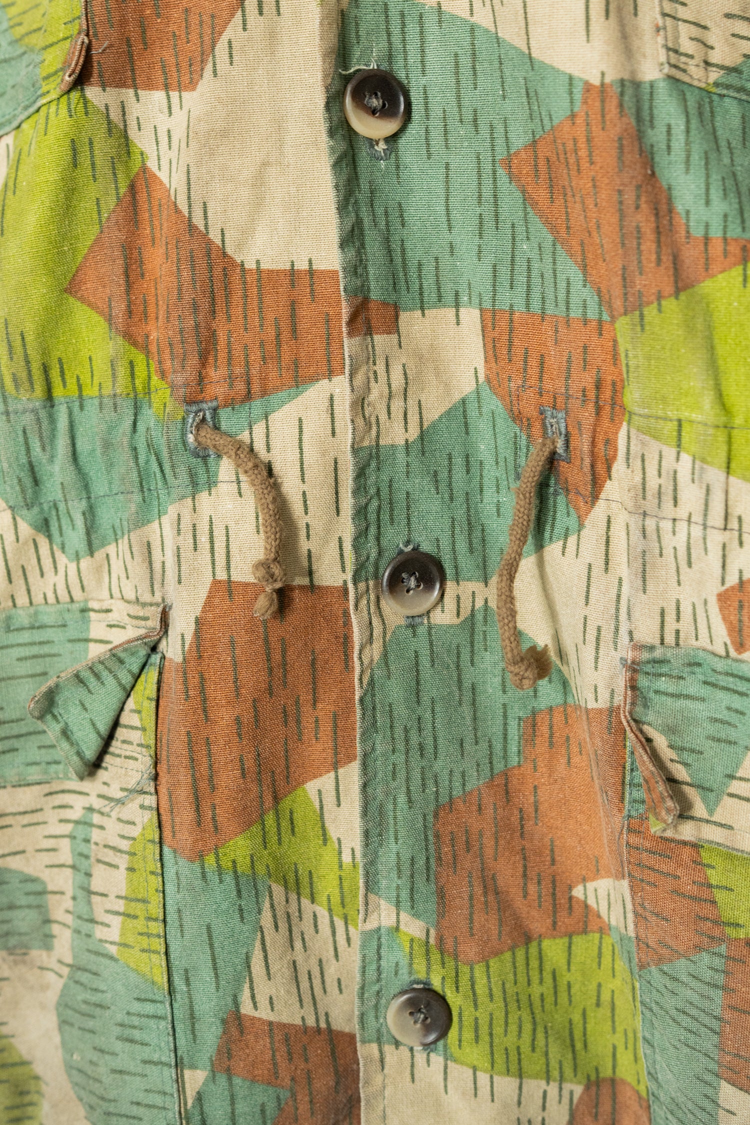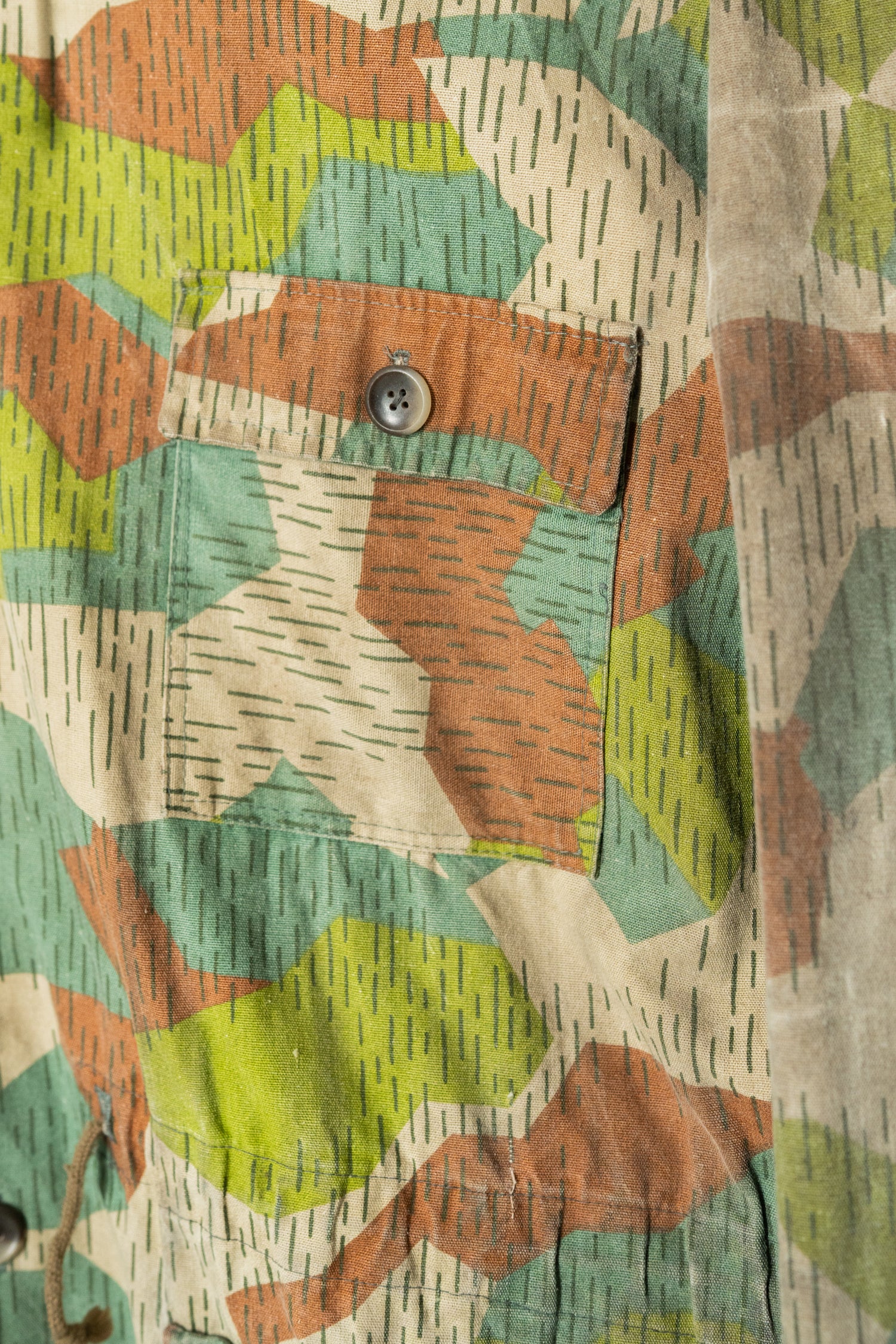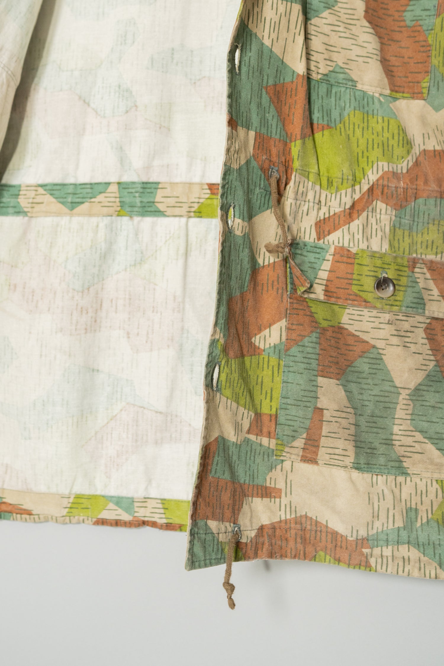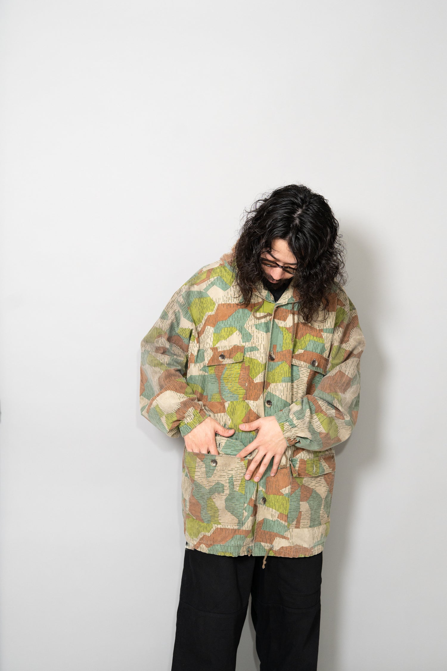 本作のスプリンターカモフラージュは、ドイツ軍の迷彩やフランス軍、さらには現代のデザイナーズブランドにも影響を与えた系譜の中に位置付けることができます。実際に、Maison MargielaやHelmut Lang、近年ではStone IslandやC.P. Companyといったブランドも、ミリタリーアーカイブを参照しながら独自の解釈で迷彩やフィールドジャケットのディテールを再構築してきました。そうした文脈の中で見ると、本作は単なる古着やミリタリーウェアではなく、現代ファッションの源流を体感できる「資料的価値」を持つ一着とも言えます。