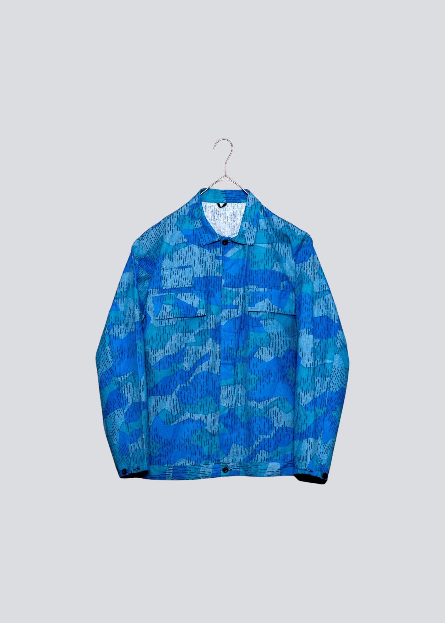 現在、このブルースプリンターパターンのジャケットは、欧州や日本をはじめとするミリタリーファッション愛好家やデザイナーたちから熱い注目を集めています。その理由は単なる希少性にとどまらず、パターンや配色の先進性にあります。都市的でモードな印象を持つブルーカモは、ストリートウェアやテックウェアとの相性も抜群で、タウンユースにおいても強烈な個性を演出できる一着です。