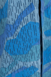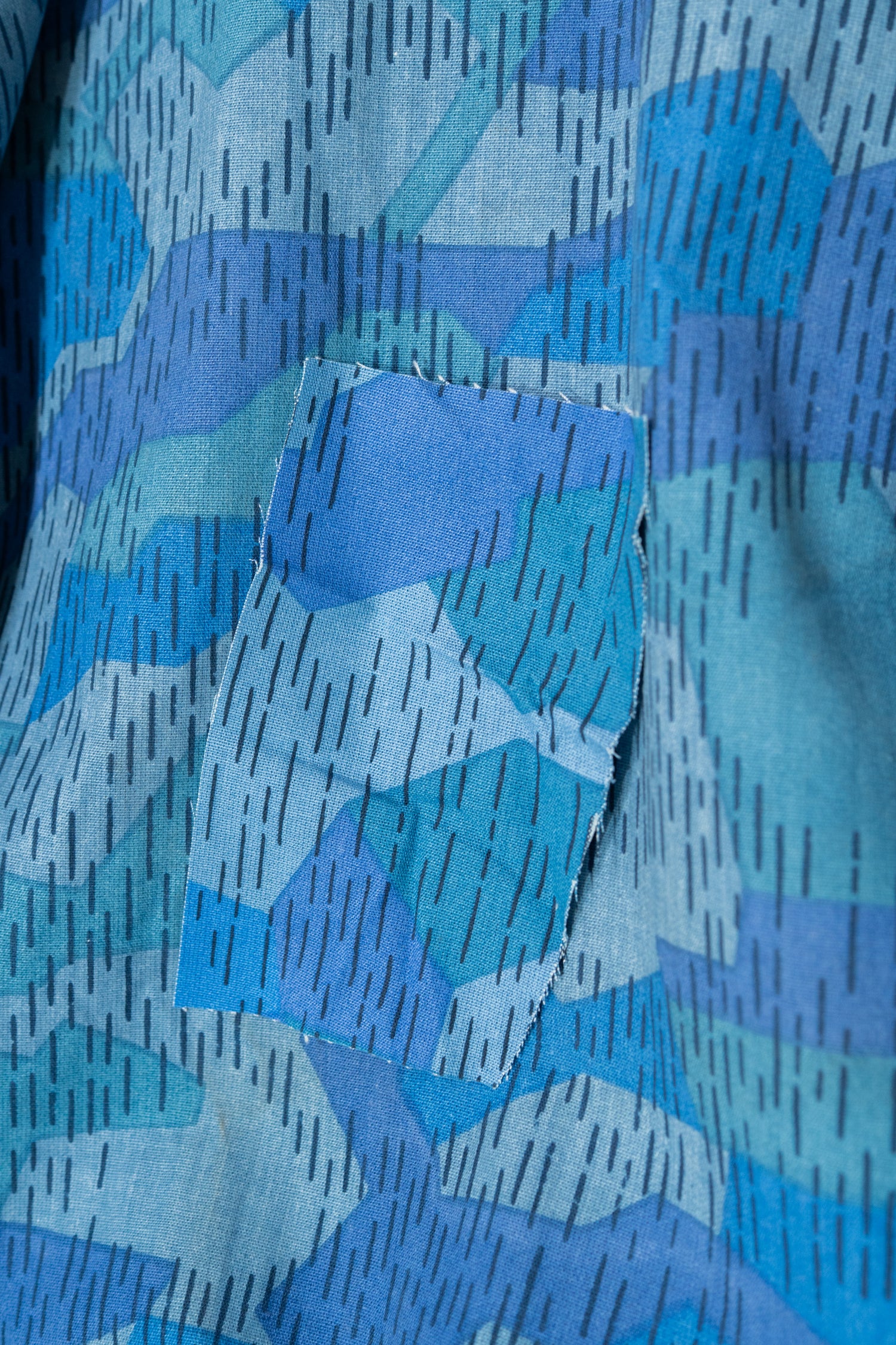 特筆すべきは、その色彩です。スプリンターカモといえば通常グリーンやブラウンを基調とした“森”のカモフラージュですが、本品は一転してブルー〜グレーをベースに構成されており、視覚的に非常にクールで、ミリタリーウェアの常識を覆すような美しさを備えています。これは都市部や夜間における活動、あるいは視認性と威圧感を両立させるための意図があったと考えられており、単なる戦闘服ではなく、“存在を誇示する制服”としての意味合いを持っていました。