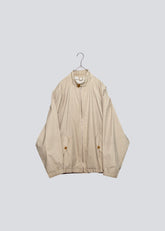 まず注目すべきはその素材感。表面にはコーティング加工が施されたコットンが使用されており、防風性・防水性が高められています。これは英国の不安定な気候、特に冷涼かつ雨の多い地域性に適応するための工夫です。伝統的なバーバリーのコートやマッキントッシュといったイギリスのアウターウェアの技術や思想とも共鳴する要素です。