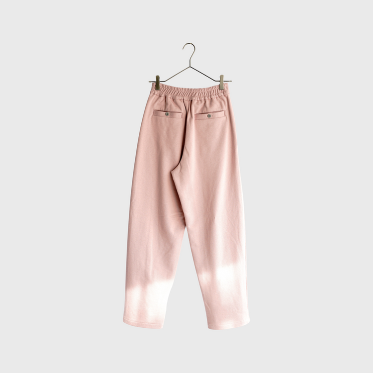 SWEAT WITH COLLARと共地のスエットイージートラウザーズ。前ジッパー開き、後ろにのみゴムを通し、イージースラックス仕様。綺麗めに履けるグレイッシュカラーのスエットパンツです。ユニセックスで着用頂けます。