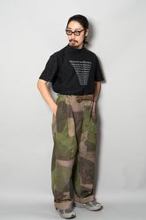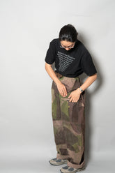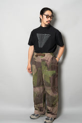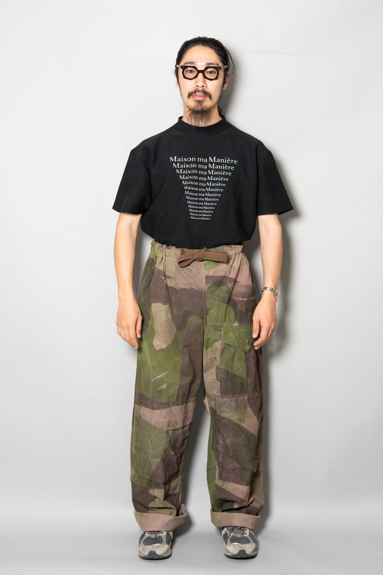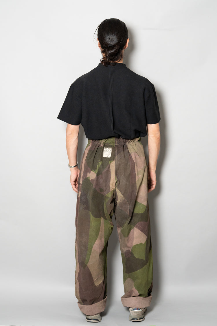ファッション的な観点から見ても、このオーバートラウザーズは高いポテンシャルを持っています。ゆとりのあるシルエットは現代的なスタイルにも自然に取り入れることができ、カーゴパンツの延長としてコーディネートに取り入れると、圧倒的な存在感を放ちます。無地のトップスやブーツと合わせるだけでも独特のスタイリングが完成し、スモックとセットアップで着用すればヴィンテージミリタリーが持つ迫力を存分に堪能できます。