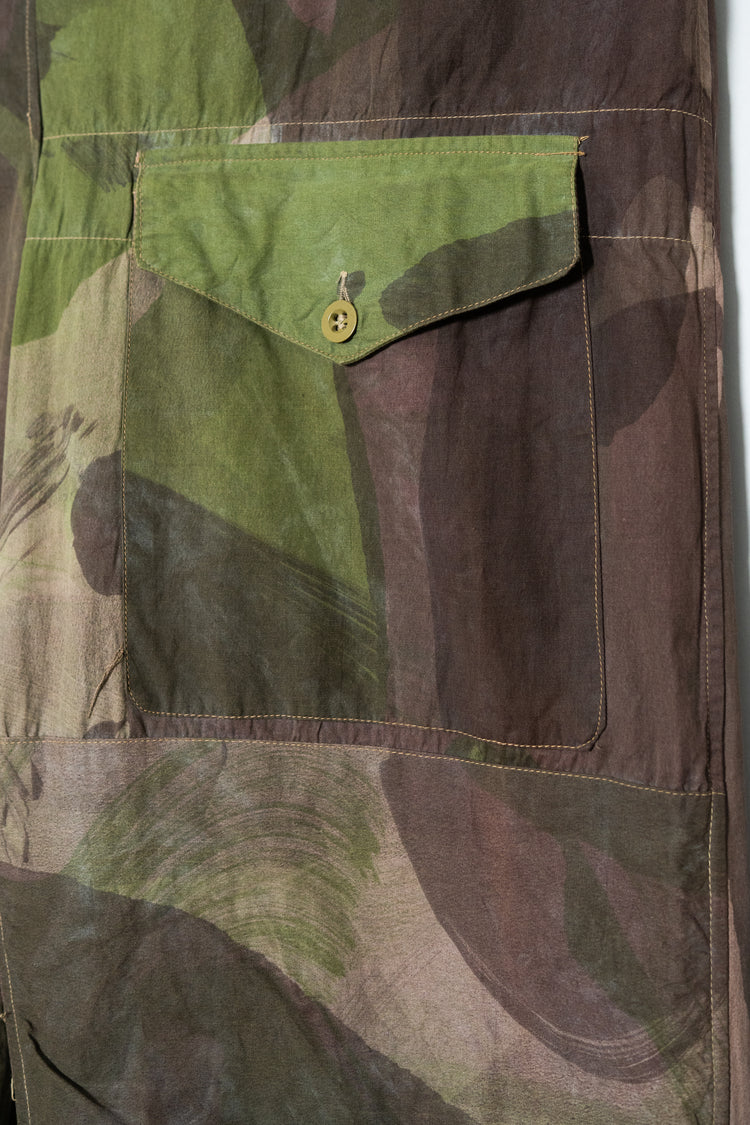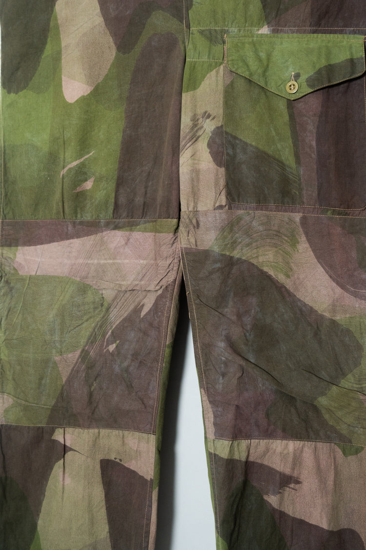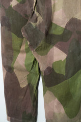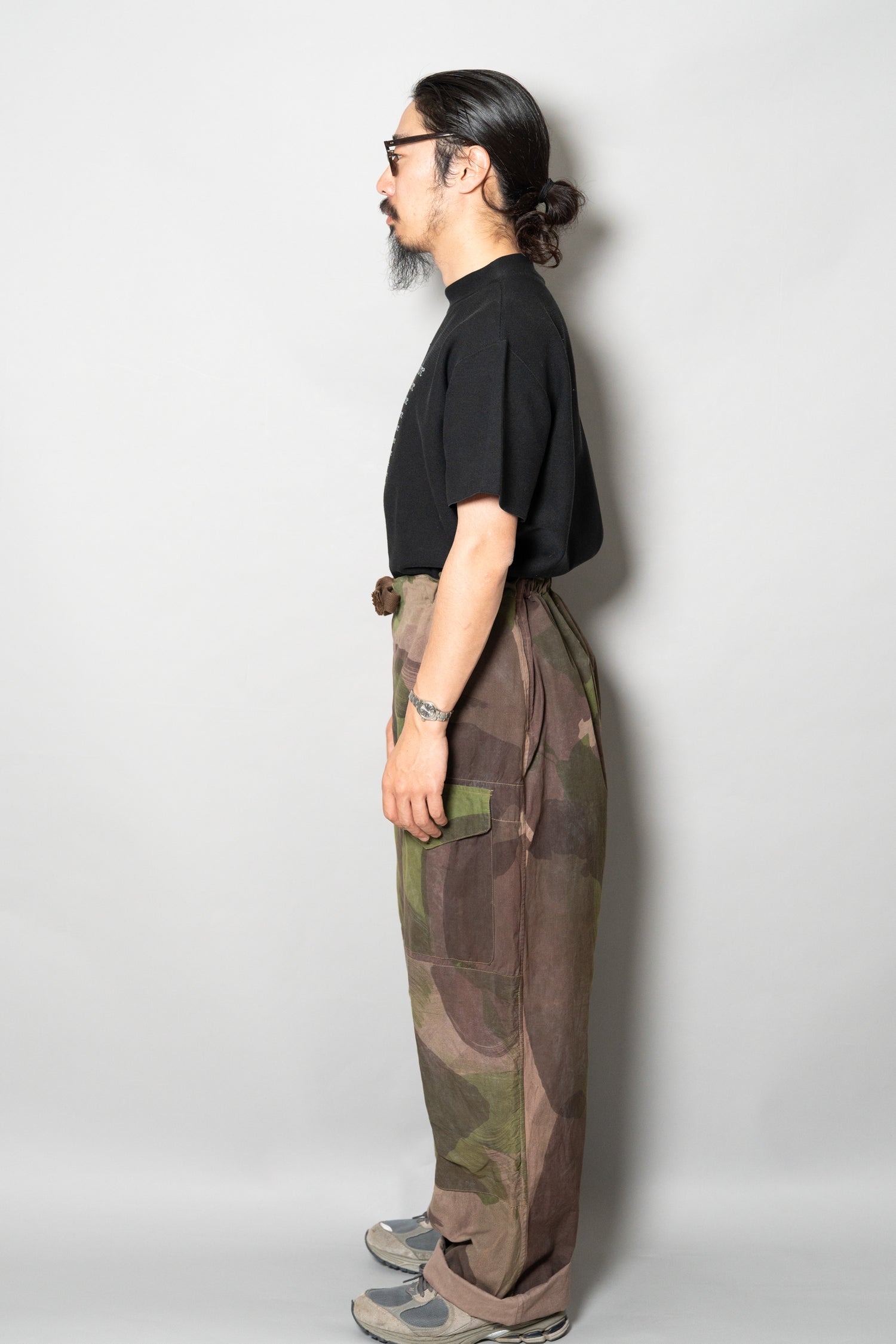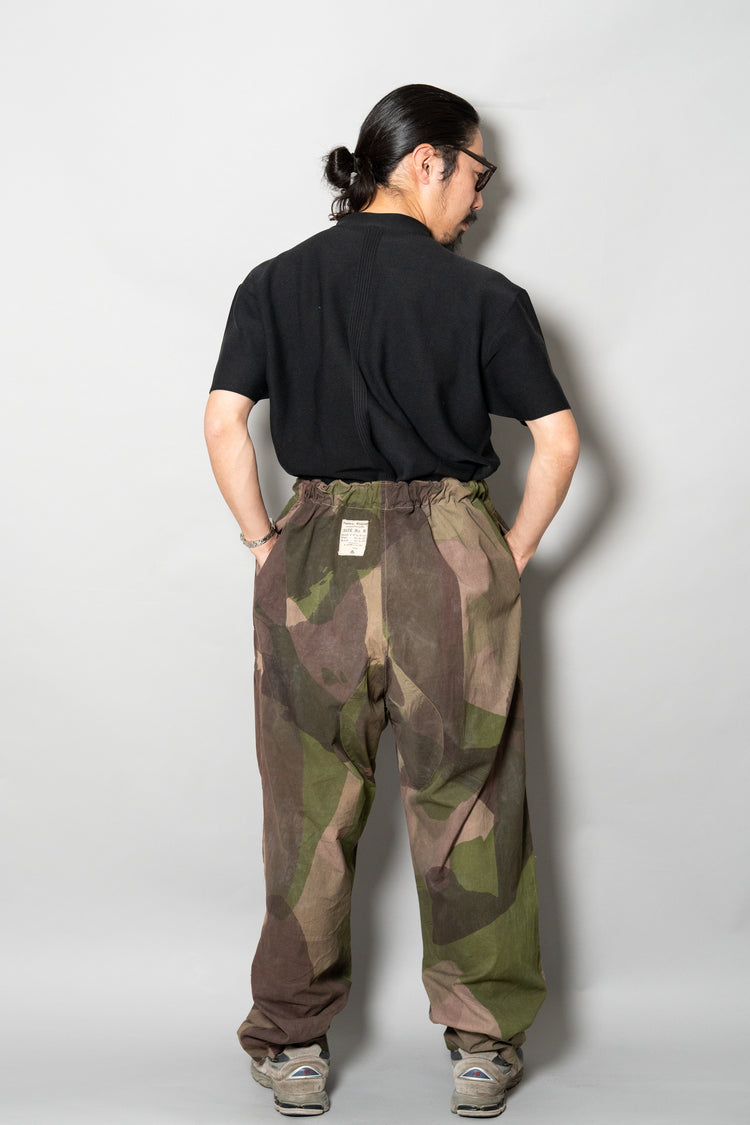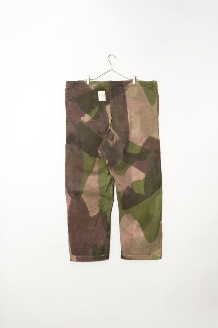 希少性について触れると、このオーバートラウザーズはスモックに比べると現存数がやや多いとされますが、それでも当時のオリジナルが流通する機会は極めて限られています。特に本品のように迷彩の色彩が鮮明に残っているものや、使用感がありながらも致命的なダメージが見られない良好な状態のものは年々少なくなっています。既にミュージアムピース級とされる個体も多く、今後ますます入手が難しくなることは間違いありません。リプロダクトや復刻品は存在しますが、当時のコットンポプリンが持つ独特の手触りや、退色や経年変化による唯一無二の風合いは、オリジナルにしか備わらない魅力です。