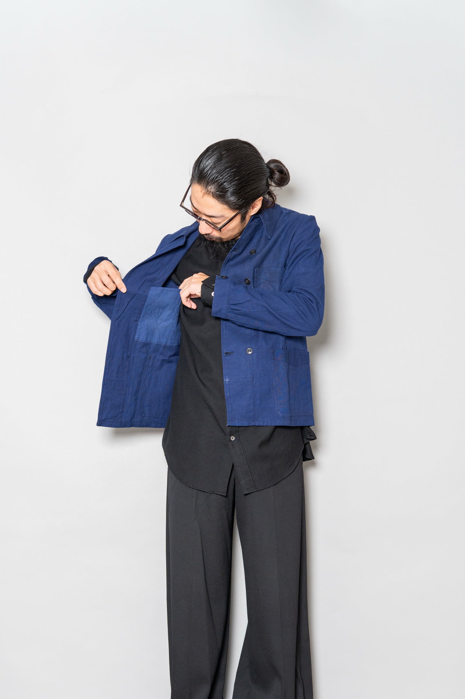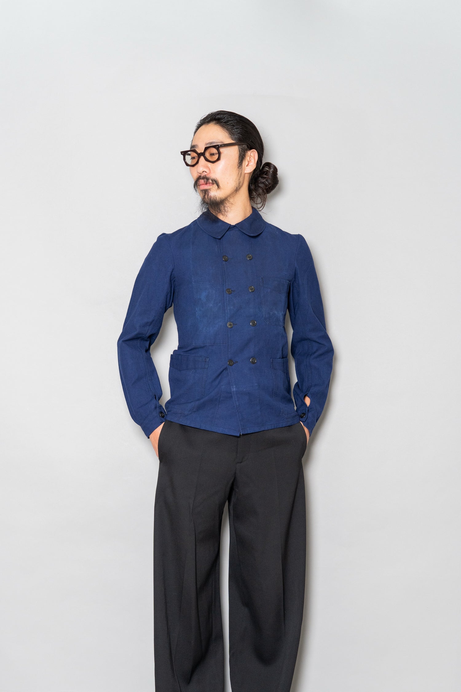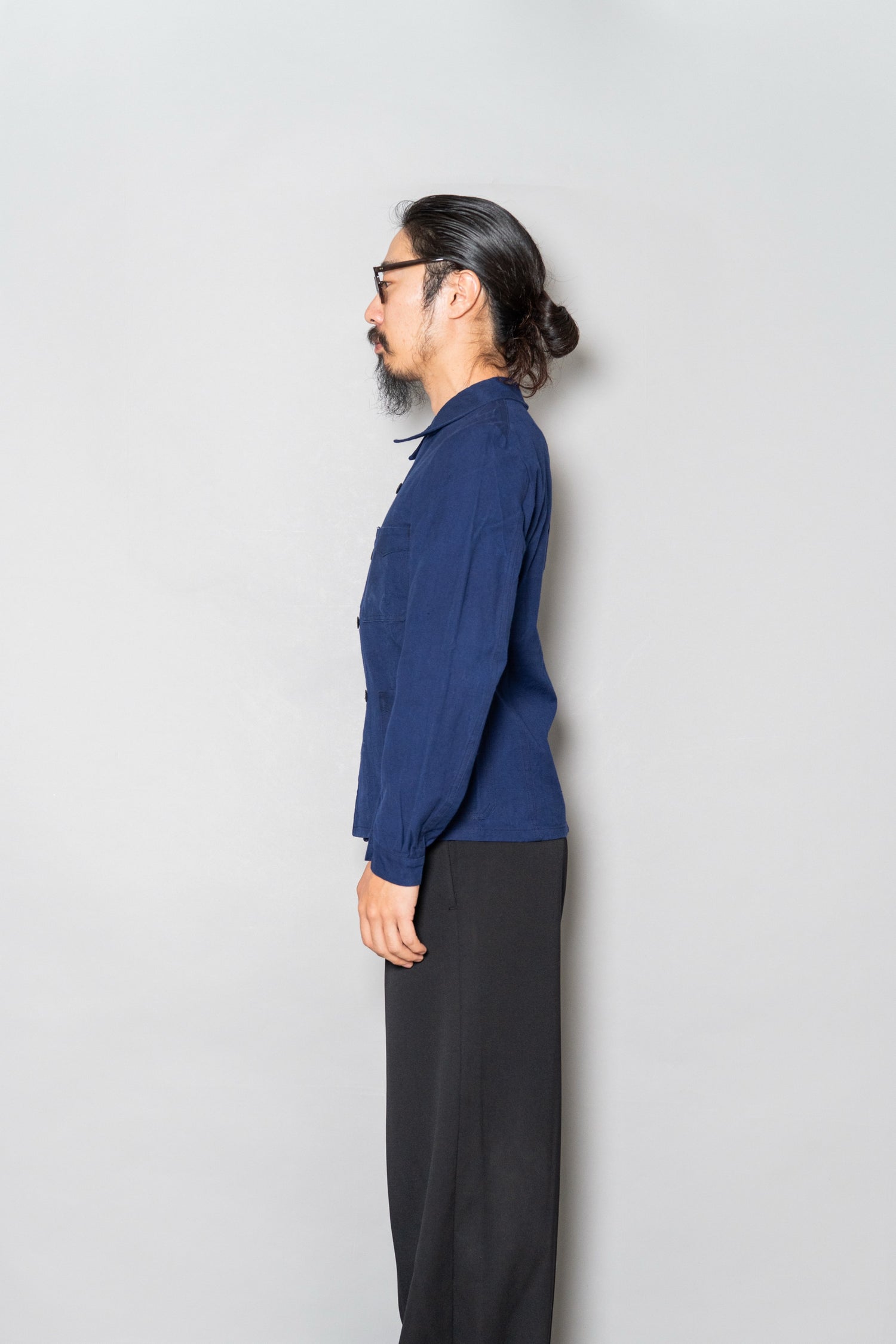 ブラックのワイドトラウザーやグレーのスラックスと合わせればシックに、デニムやワークパンツと合わせれば本来のルーツを感じるスタイルに仕上がります。ボタンをすべて留めてミニマルにまとめるのも良し、開けてリラックス感を出すのも良し。時代を超えて自由に楽しめる、まさに“生きたヴィンテージ”です。