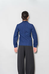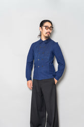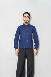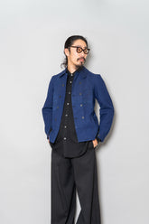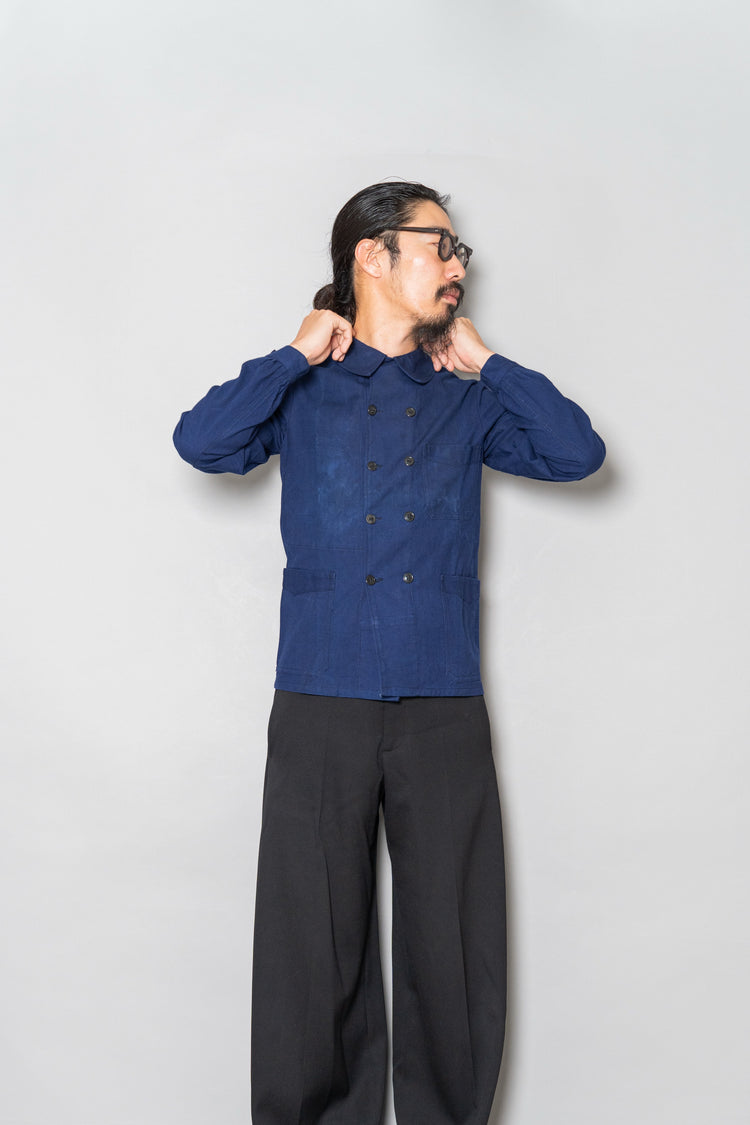 「働く服」が「美しい服」へと昇華した瞬間を感じ取れるのが、この1940s Indigo Métis Double Breasted Jacketです。