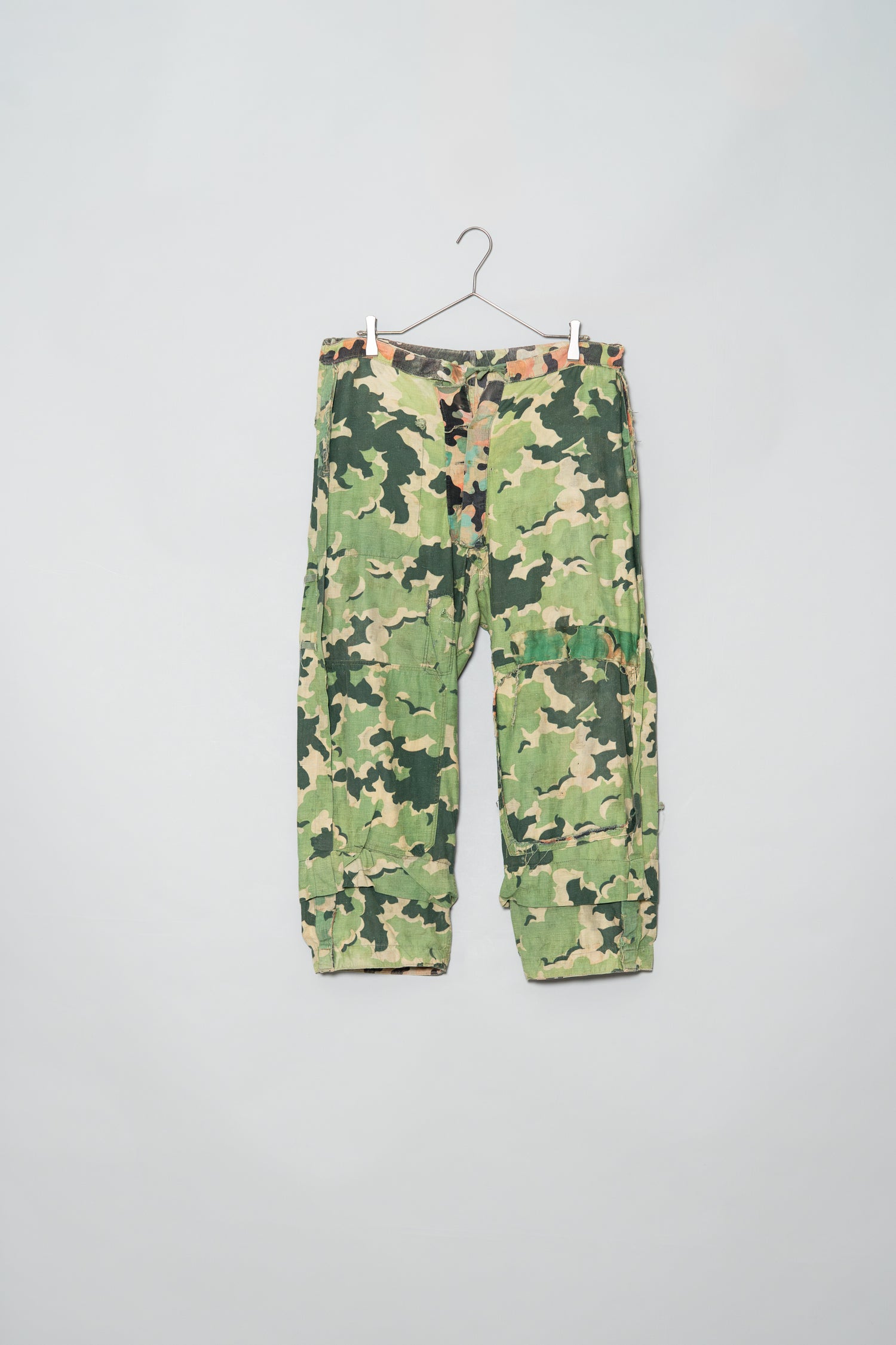 このパンツが生産されたのは、第二次大戦後、軍再編が急がれていた1950〜60年代。空挺部隊や特殊任務の兵士に向けて限られた数が作られたため、そもそもの現存数が少なく、特にボトムスは実戦や訓練で酷使された影響で “状態の良い個体” にほとんど出会えません。そのため、当時の兵士の生活や任務の痕跡を残したこうした実使用の一本は、デッドストックとはまた別の意味で希少性を持ちます。歴史の中をくぐり抜けてきたリアルさが、一本ごとに異なる個性として現れるからです。