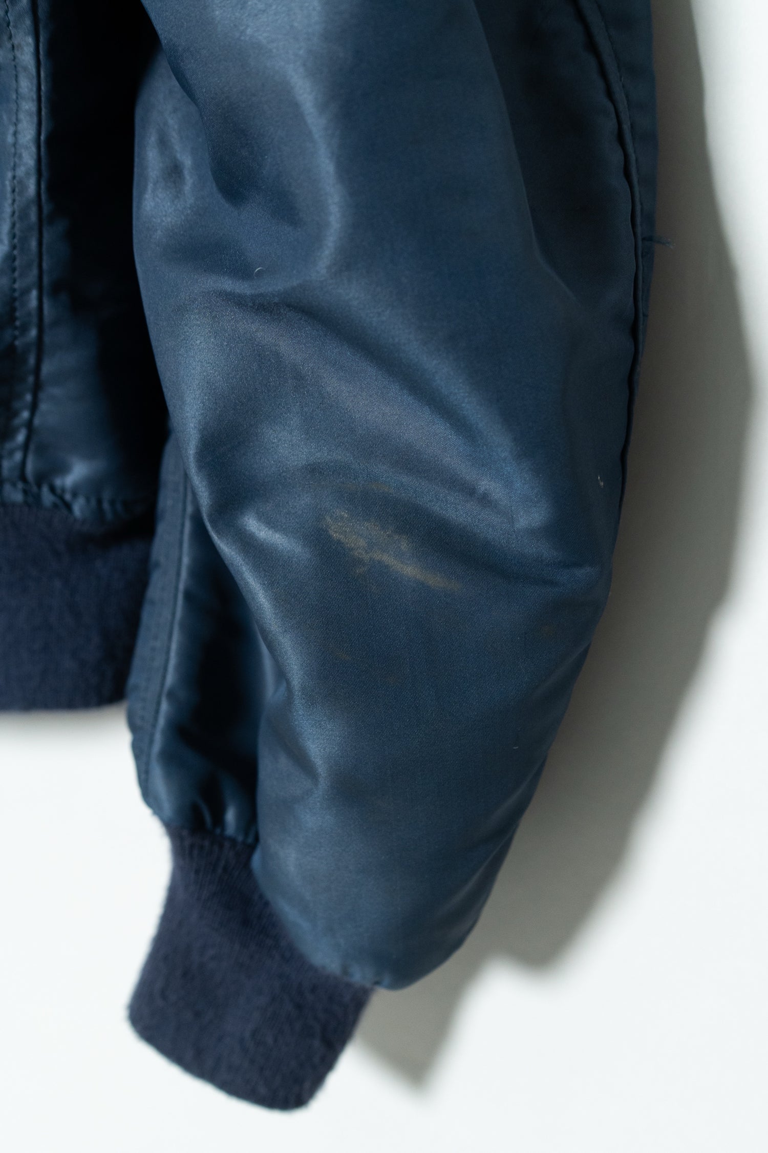 本個体は、当時のままの形を美しく保った38サイズ。ムートン襟の毛並みは豊かで、光沢を残したナイロンシェルは、70年以上の時を経てもなお艶やかです。袖と裾のリブも良好な状態で、すべてのパーツが生きています。触れた瞬間に伝わる重量感と空気を含んだような柔らかさは、現代のレプリカでは決して再現できない質感。単なるヴィンテージではなく、時代の空気を封じ込めた“生きた布”なのです。