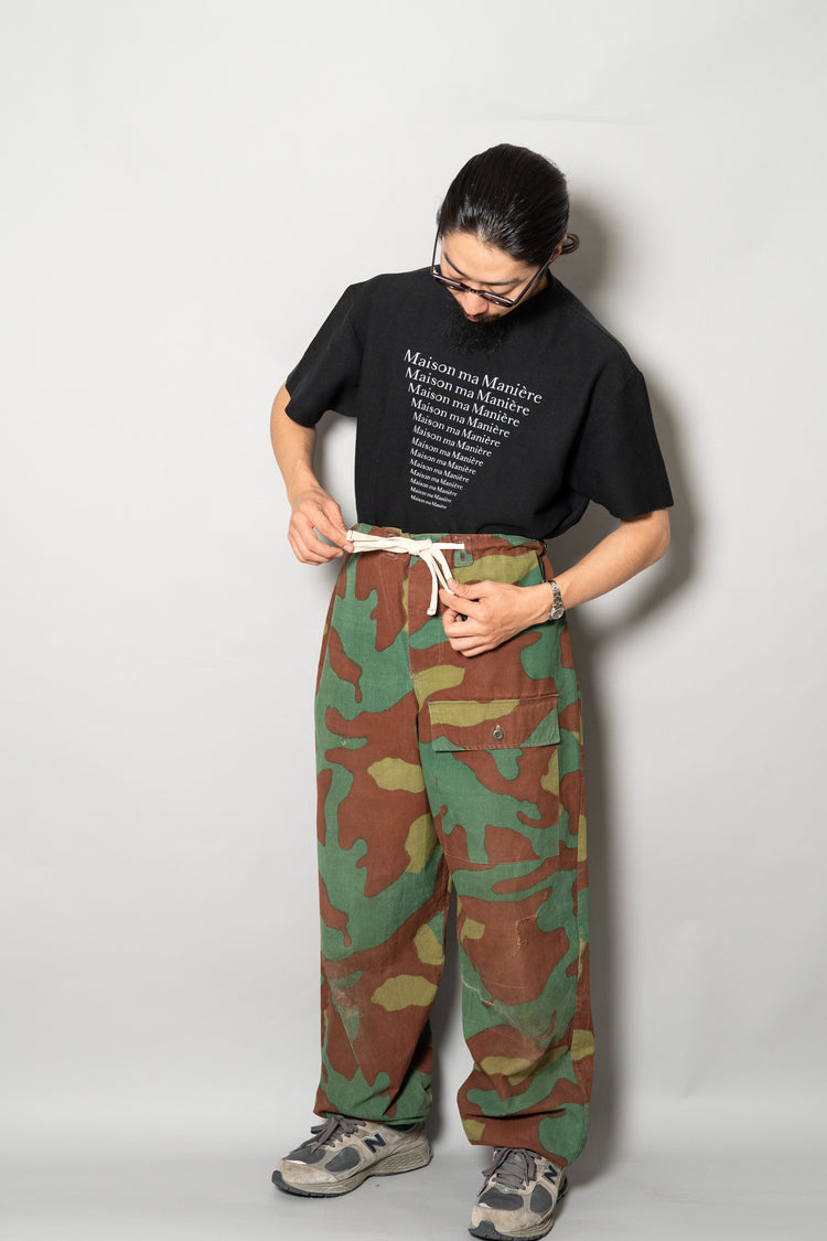 量産された官給品では決して辿り着けない領域。ヴィンテージミリタリーの奥深さと、その中でも特異点とも言える魅力を凝縮した一本です。コレクションピースとしても、日常に落とし込む一着としても、持ち主のスタイルに確かな説得力を与えてくれる存在。目の肥えた方にこそ手に取っていただきたい、真に希少なサンマルコカモパンツです。