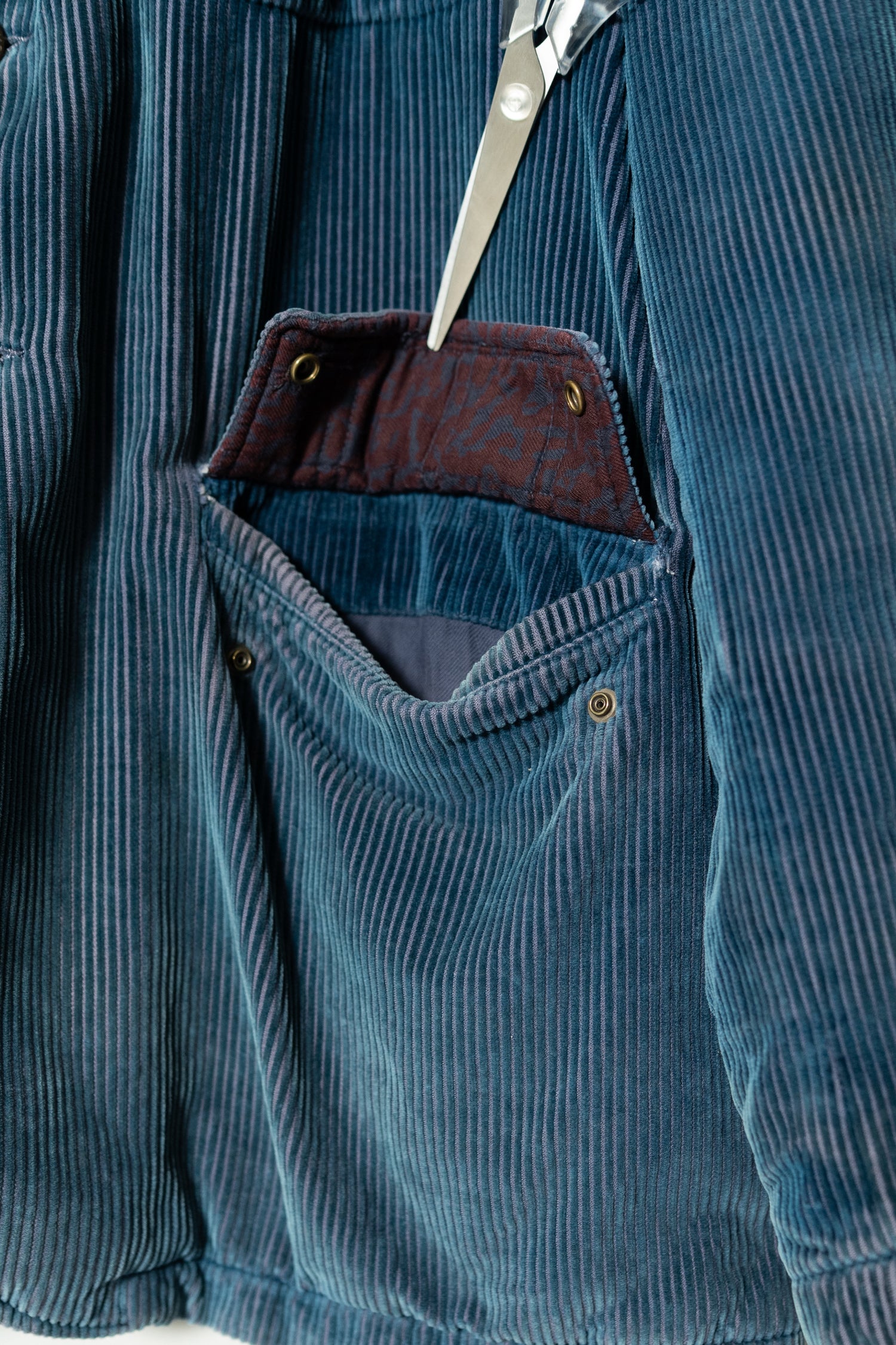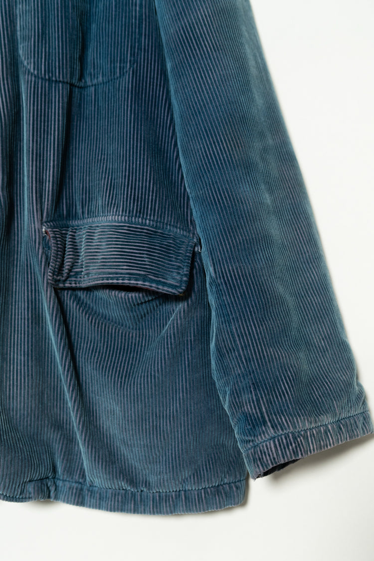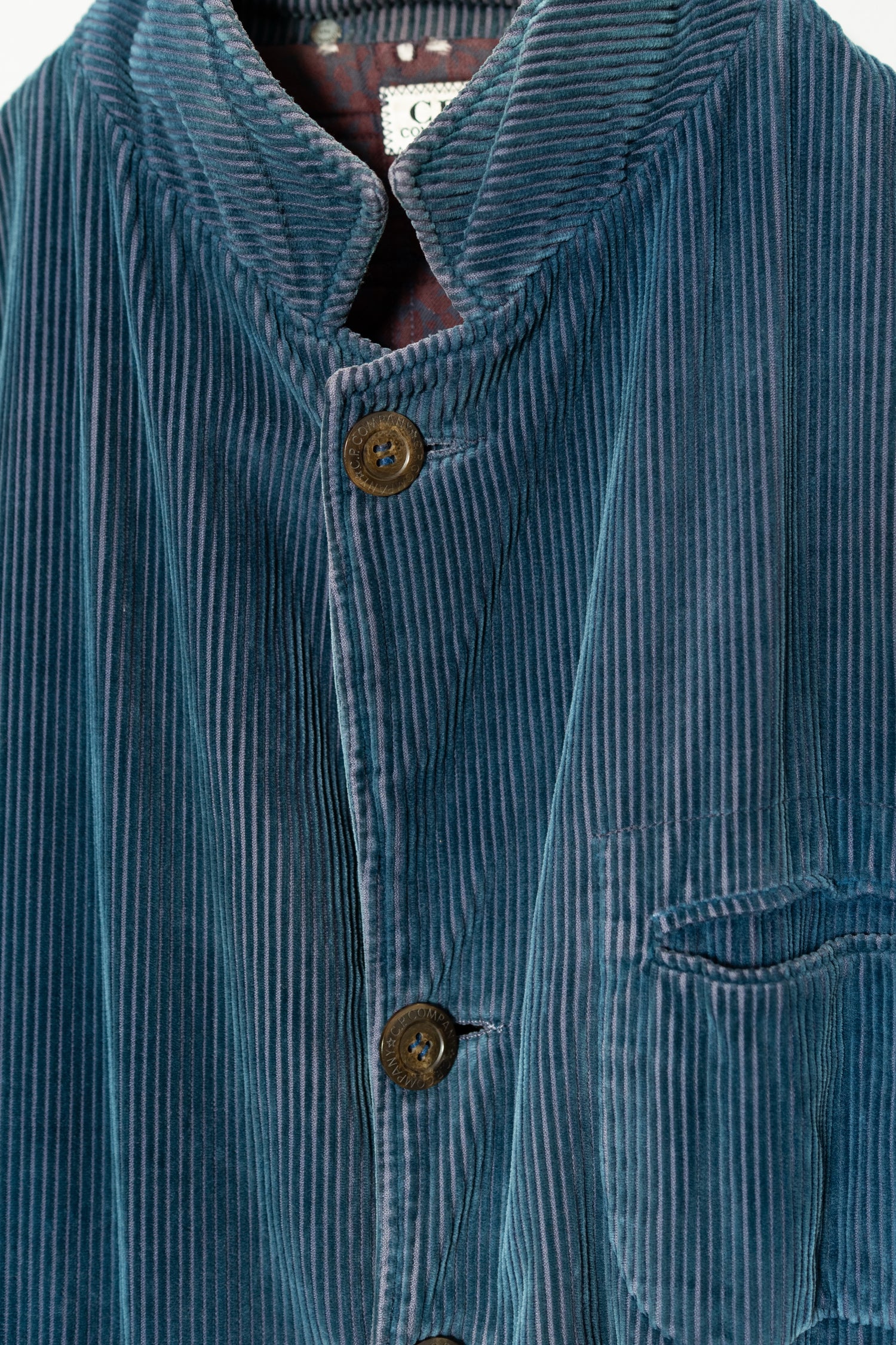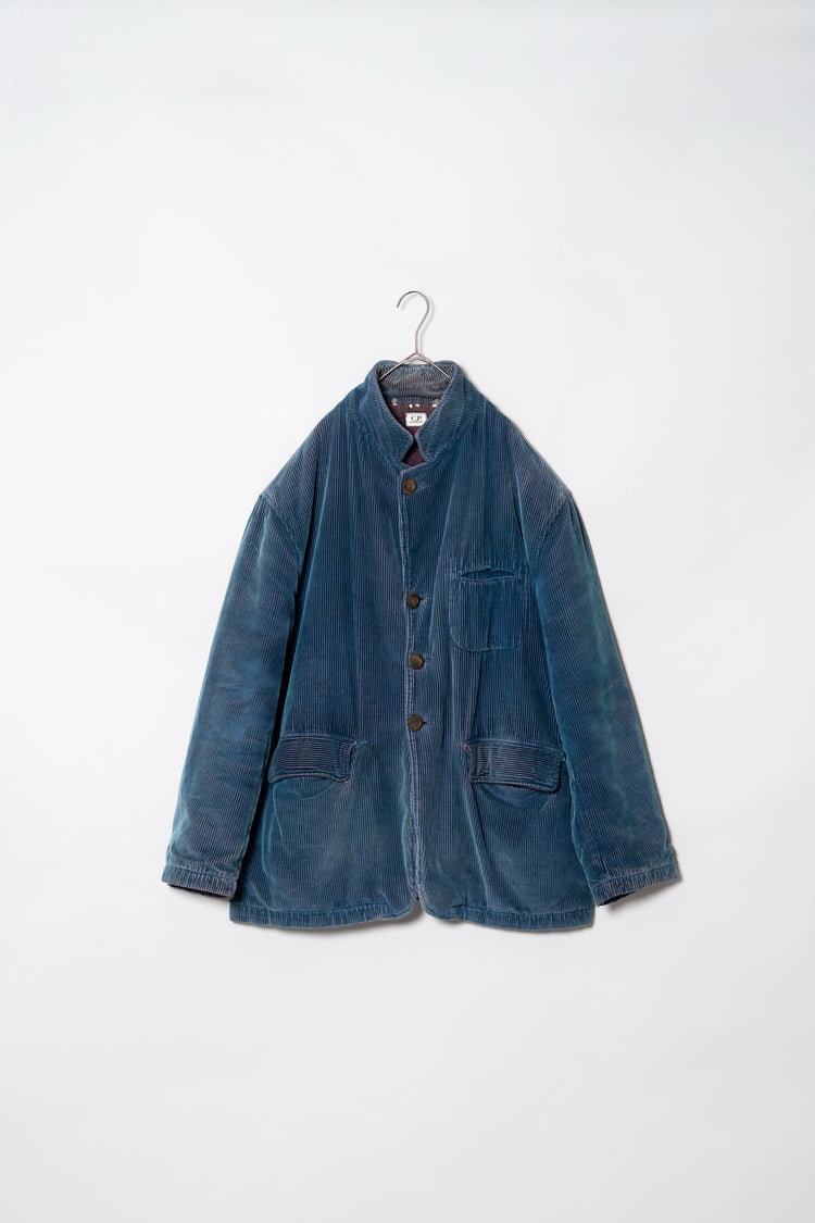 また、1994年という時代にも特別な意味があります。C.P. Companyがイタリアンモードの中で最も創造的だった時期であり、Massimo Ostiが築いた“機能の哲学”に対し、ジリが“詩的感性”を融合させた数年間。この短い交差の時代に生まれたプロダクトは極めて少なく、現存するものも年々市場から姿を消しています。とくにこのような深いブルーのコーデュロイ素材は当時でも製造が難しく、わずかなロットのみで展開されたとされます。そのため、現在ではコレクターズピースとして海外でも高値で取引される希少アーカイブのひとつです。