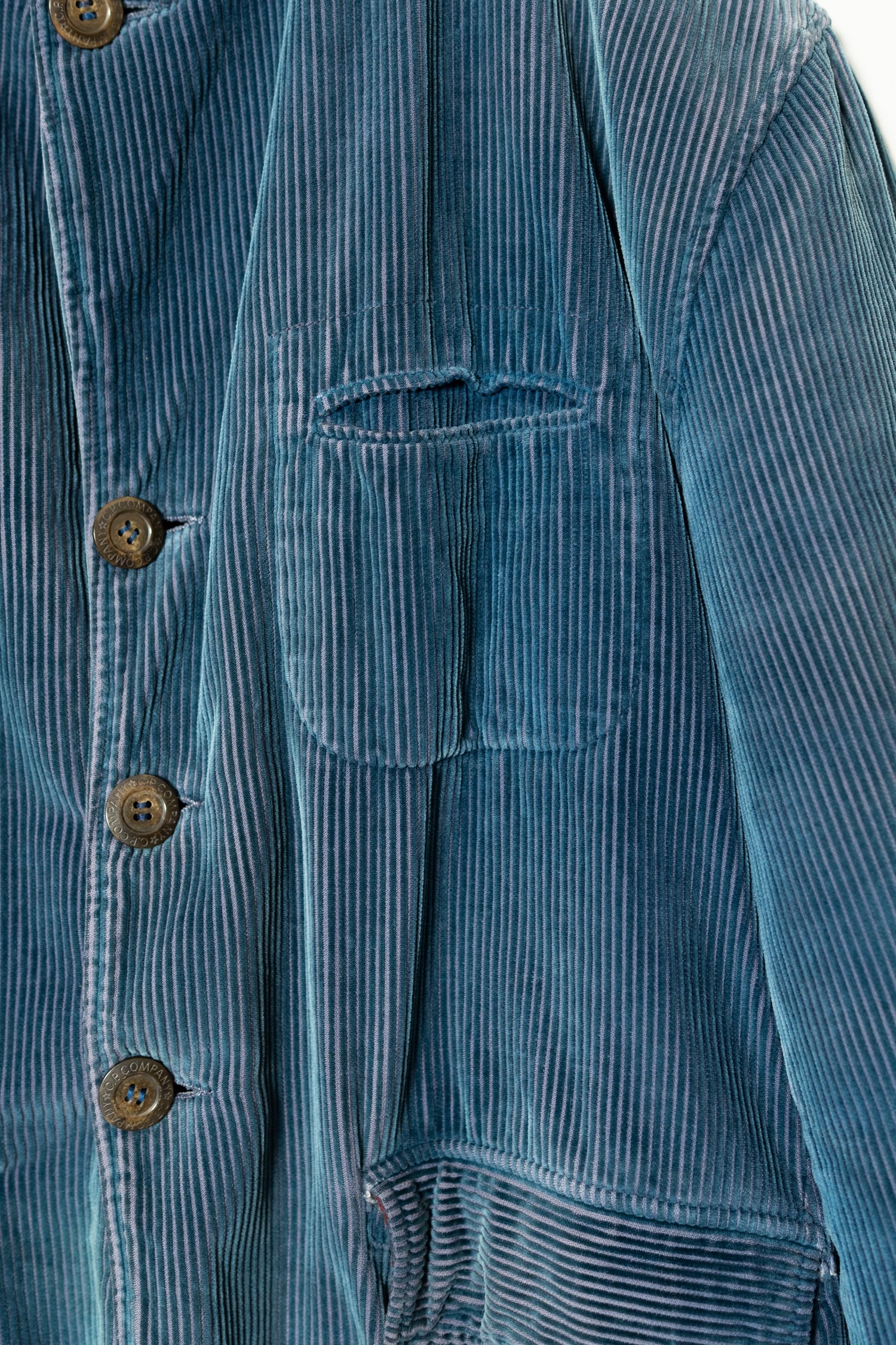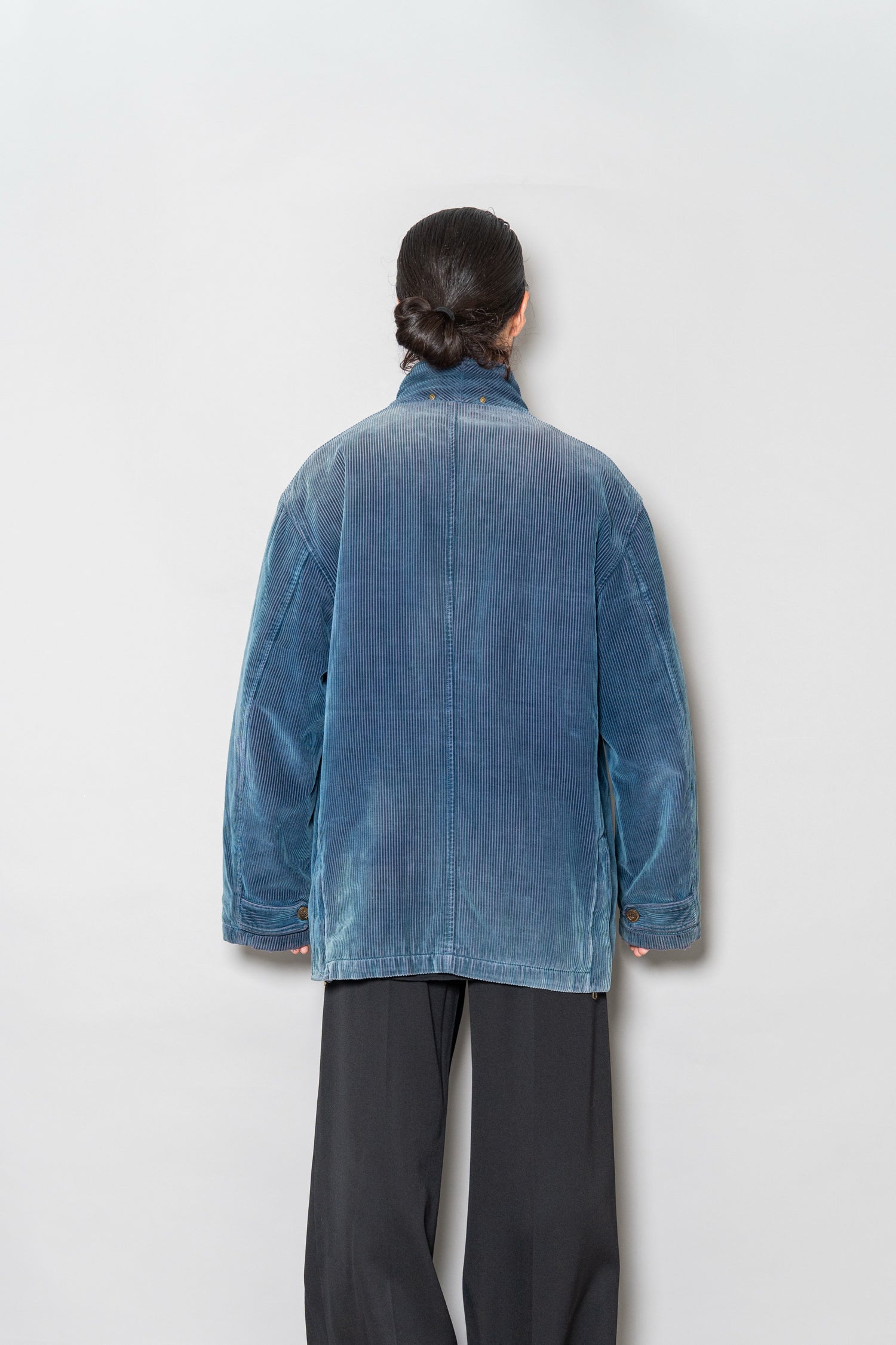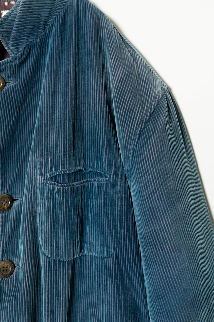 また、1994年という時代にも特別な意味があります。C.P. Companyがイタリアンモードの中で最も創造的だった時期であり、Massimo Ostiが築いた“機能の哲学”に対し、ジリが“詩的感性”を融合させた数年間。この短い交差の時代に生まれたプロダクトは極めて少なく、現存するものも年々市場から姿を消しています。とくにこのような深いブルーのコーデュロイ素材は当時でも製造が難しく、わずかなロットのみで展開されたとされます。そのため、現在ではコレクターズピースとして海外でも高値で取引される希少アーカイブのひとつです。