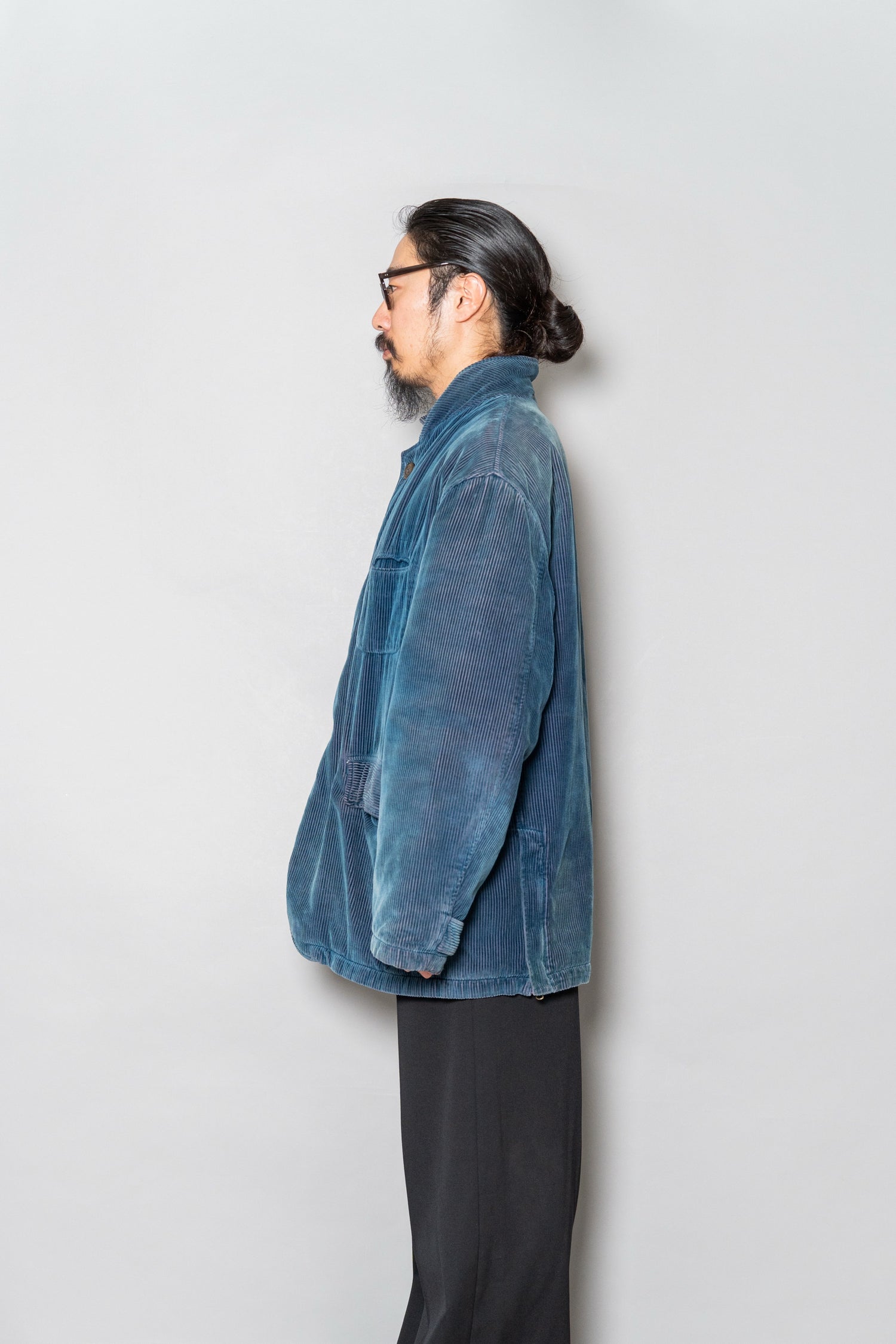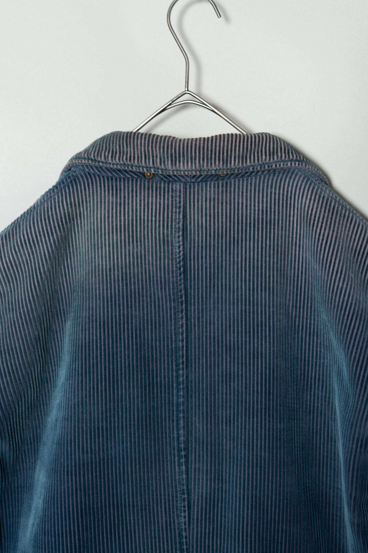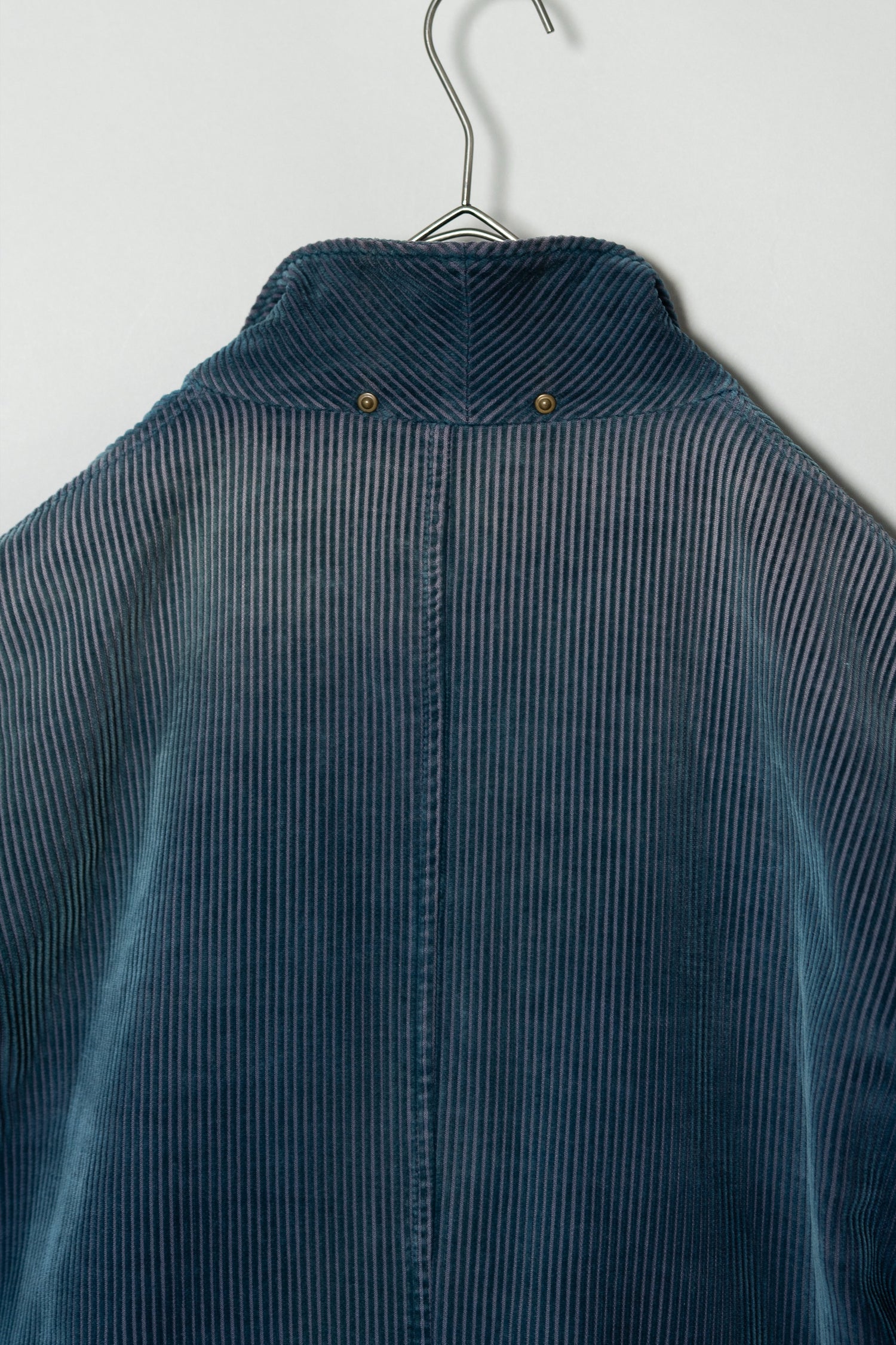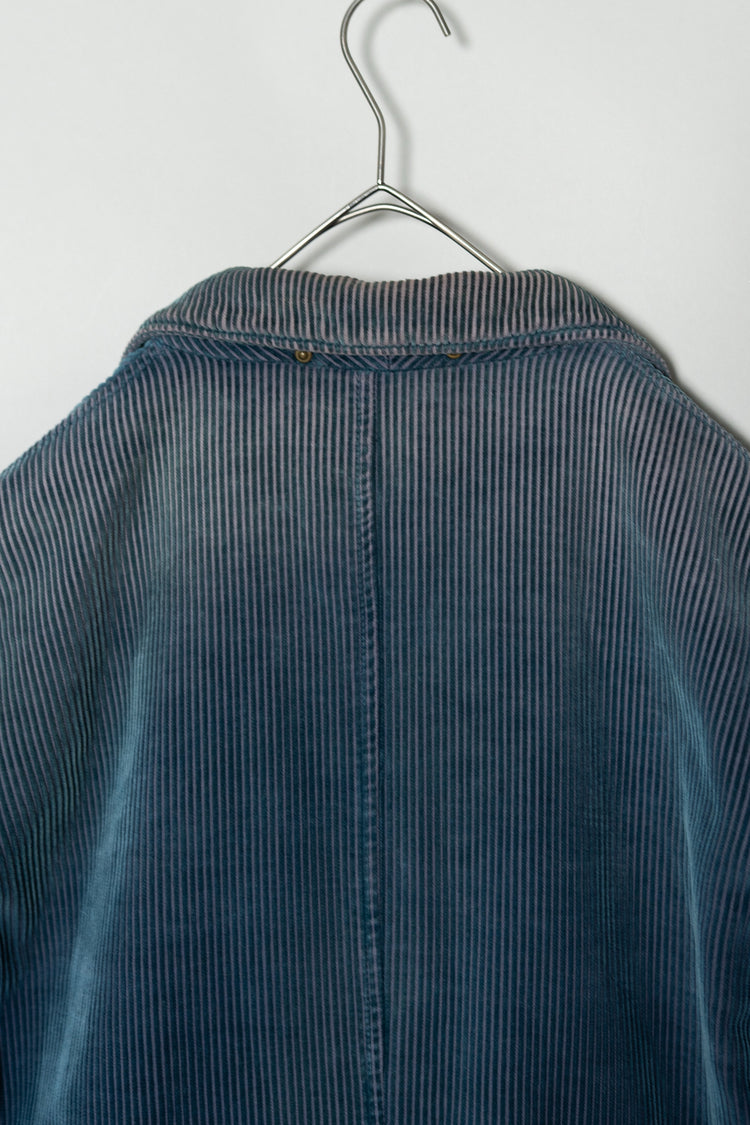 生地には中畝のコットンコーデュロイを採用。触れた瞬間にわかる柔らかさと重量感のバランスは、現代の量産ではまず再現できません。深いブルーのトーンは、光の角度によって淡くも濃くも変化し、まるで時間の経過そのものを閉じ込めたかのよう。経年による褪色が天然のグラデーションを描き、ひとつとして同じ表情を持たない個体差を生み出しています。見るたびに印象を変えるこの“色の深さ”こそが、90年代C.P. Companyの魅力であり、ジリが追い求めた「静かなエレガンス」の体現です。