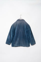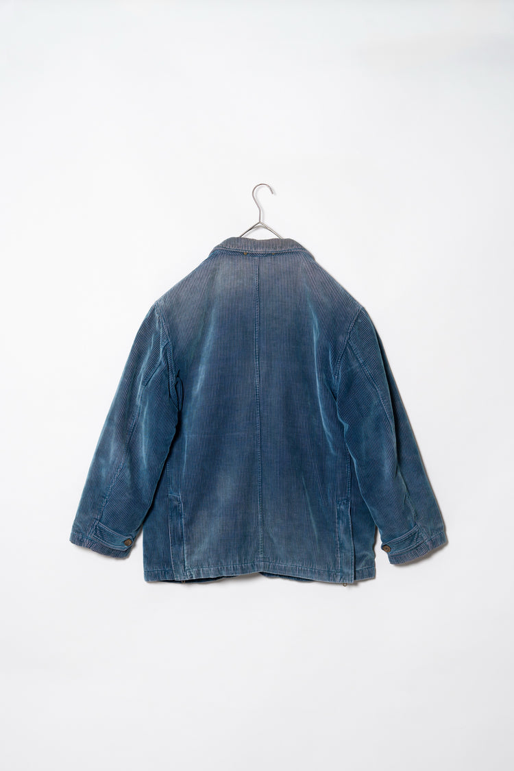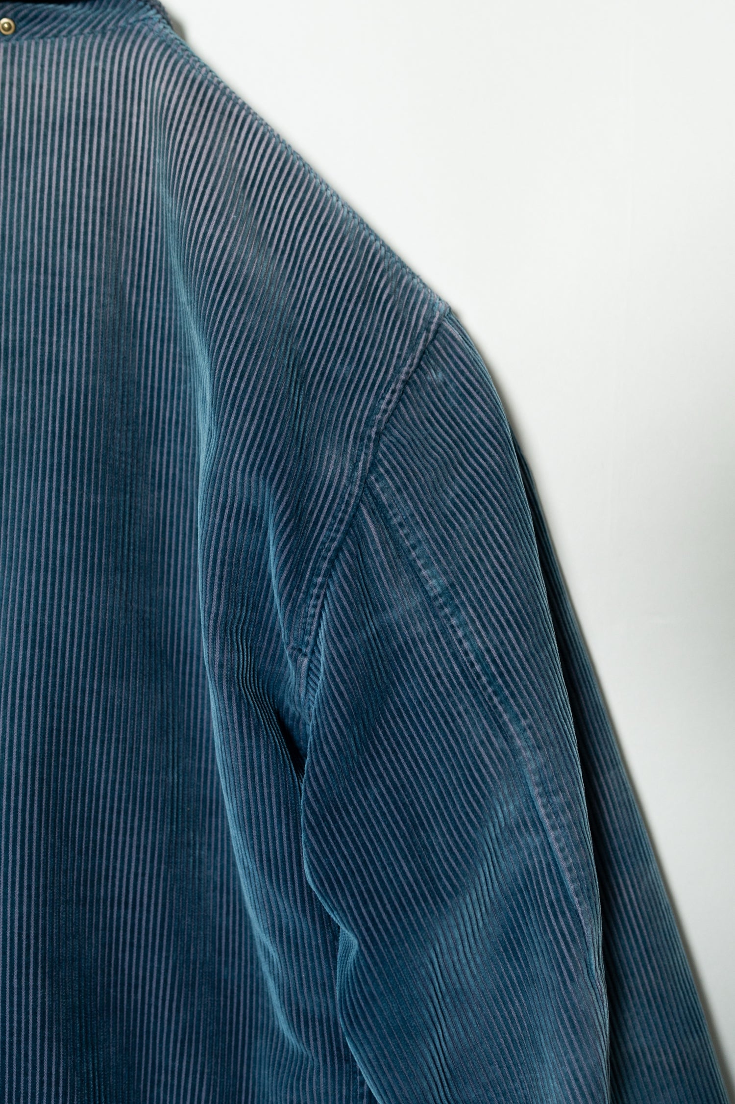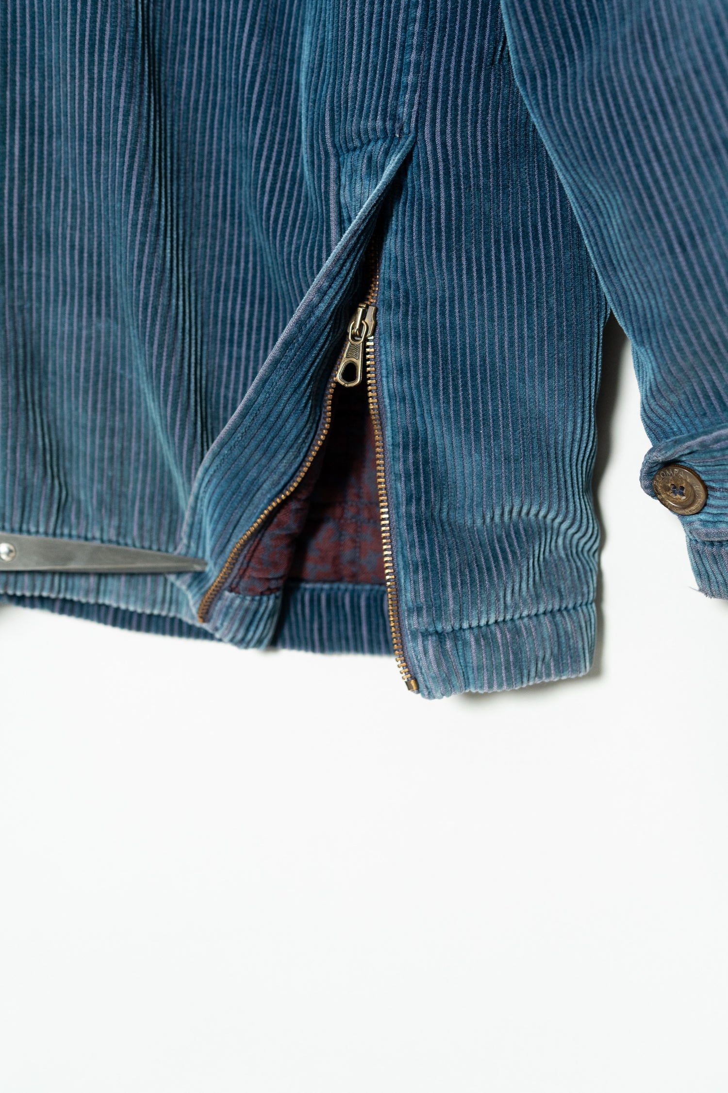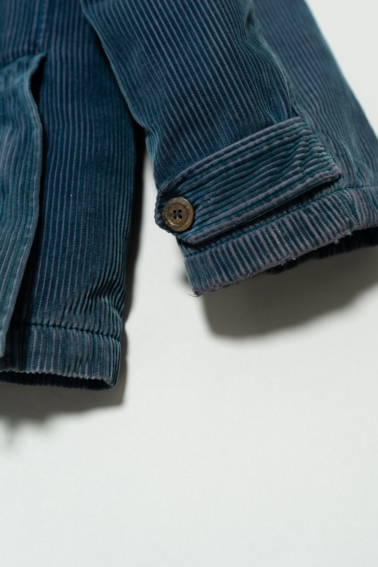 生地には中畝のコットンコーデュロイを採用。触れた瞬間にわかる柔らかさと重量感のバランスは、現代の量産ではまず再現できません。深いブルーのトーンは、光の角度によって淡くも濃くも変化し、まるで時間の経過そのものを閉じ込めたかのよう。経年による褪色が天然のグラデーションを描き、ひとつとして同じ表情を持たない個体差を生み出しています。見るたびに印象を変えるこの“色の深さ”こそが、90年代C.P. Companyの魅力であり、ジリが追い求めた「静かなエレガンス」の体現です。