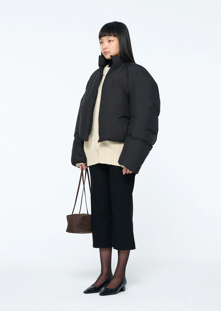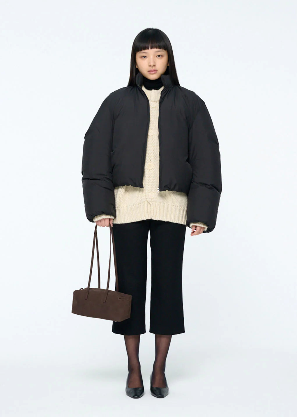まるで布団のように心地よく包み込むクロップダウンパファー