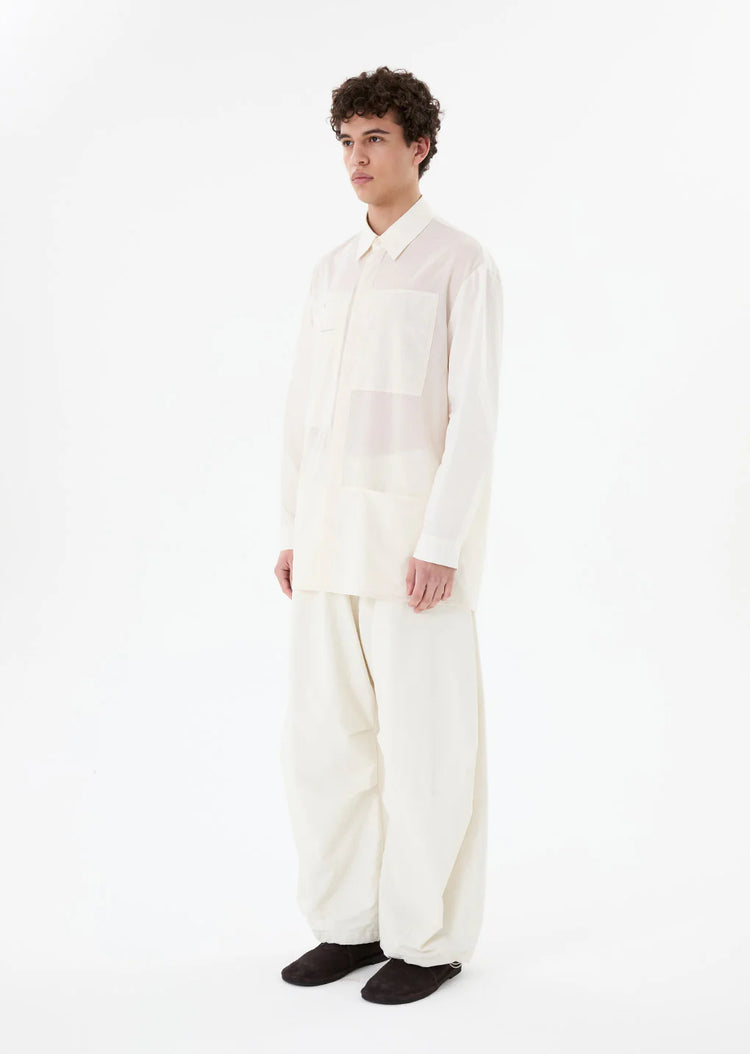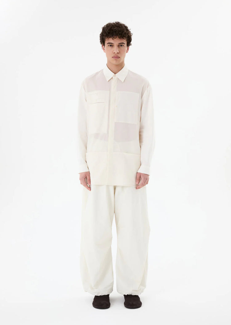 コットンナイロン素材のワイドなボリュームフィットが際立つファティーグパンツ