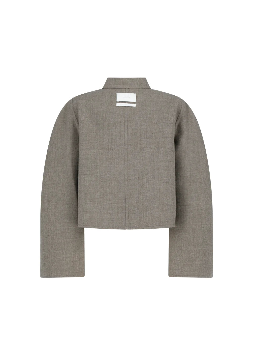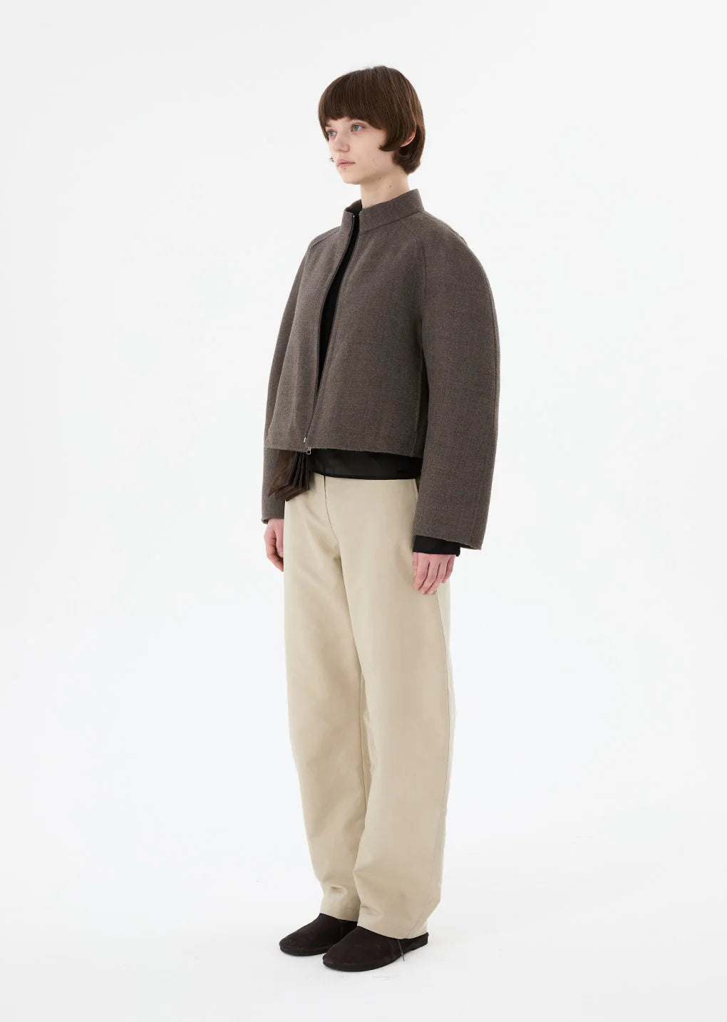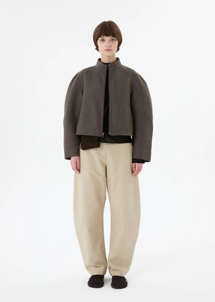ウールのダブルフェイス素材とリバーシブルデザインのクロップジャケット
