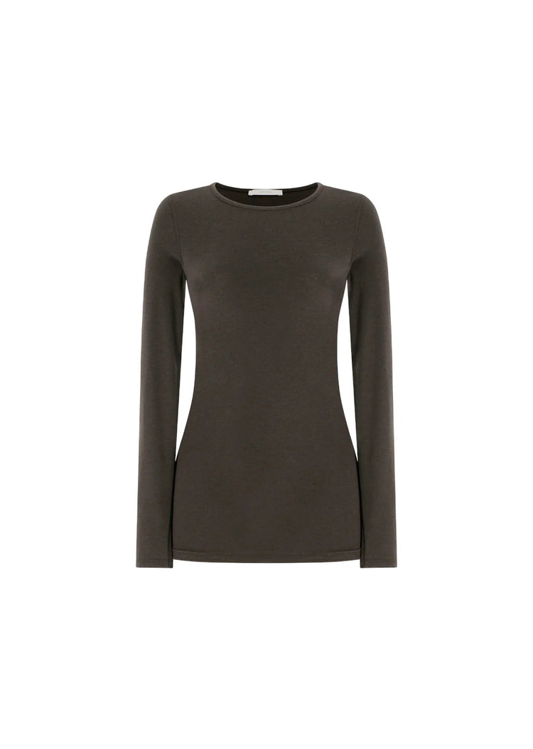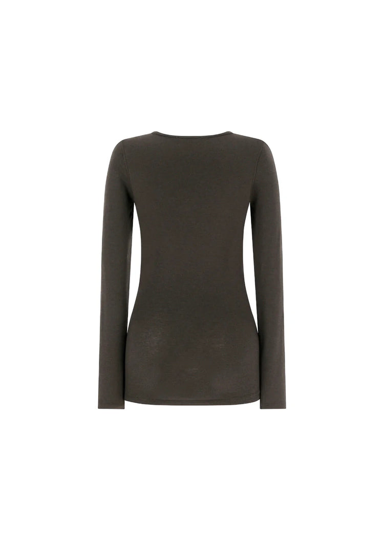 柔らかなウール混紡素材のベーシックなラウンドネックTシャツ