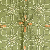 カレ一枚に対し平均25色が使われており、多いものでは40色以上の色彩がこの90cm四方に描かれ、一色毎に版を作り、プリントではなく染色の作業を行なっております。