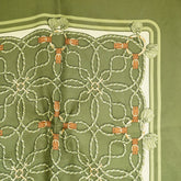 デザイン毎にデッサンをおこし、一色に対して版を作成、色を決定し、職人により丁寧に染色作業が行われ、仕上げの縁取りまで手縫いで作られているHERMESのカレ。