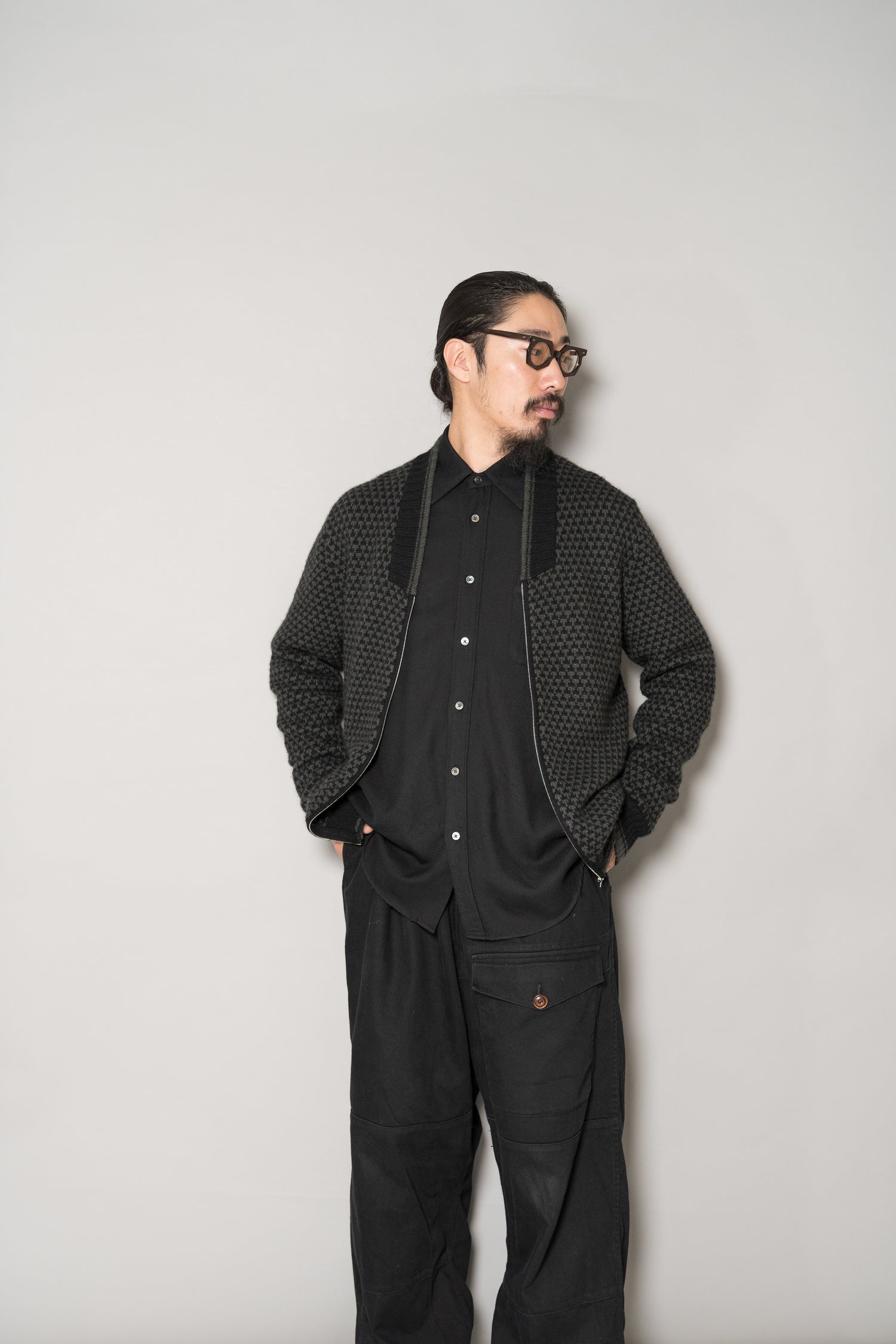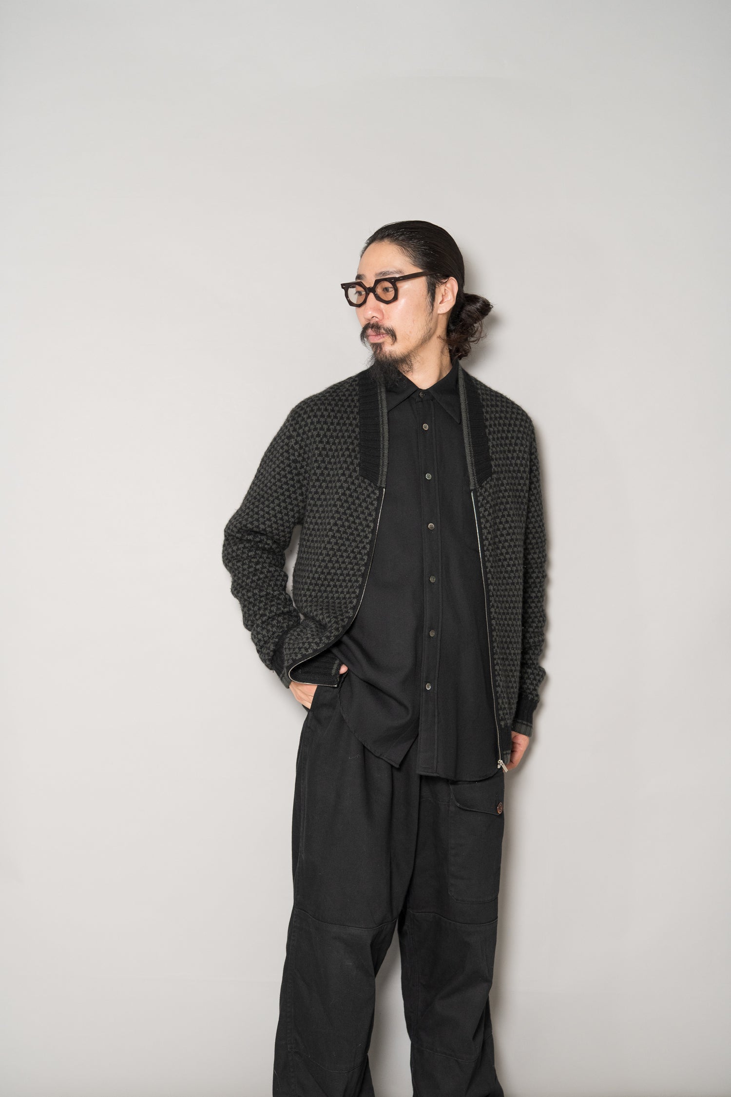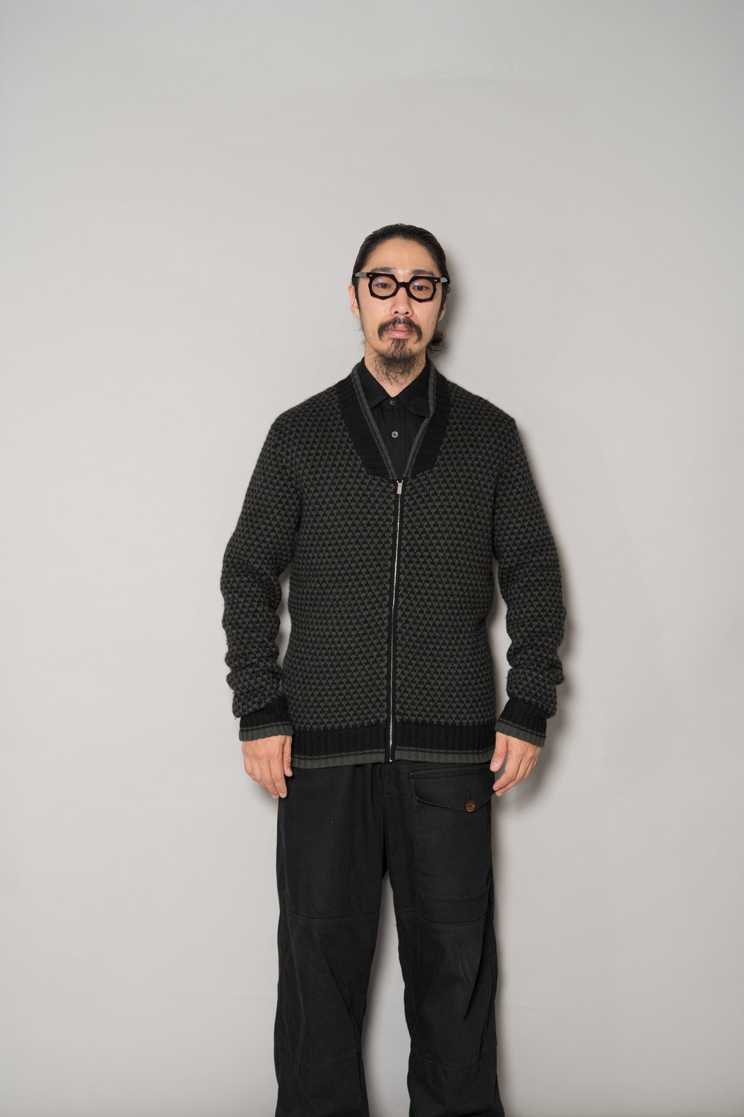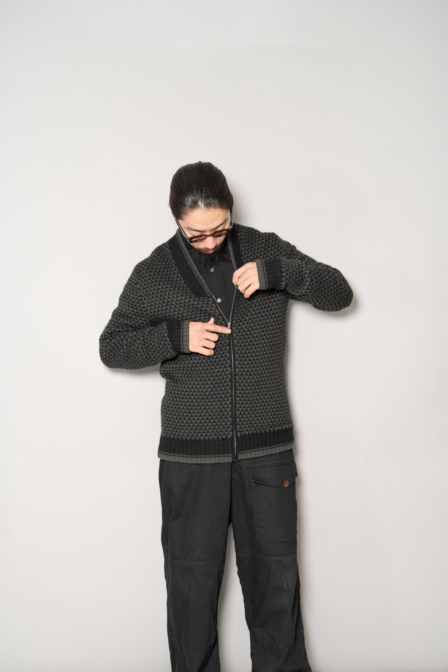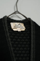 フロントにはriri製のジップを採用。エルメスが選ぶディテールは、いつの時代も機能美と美学の融合です。滑らかな開閉、そして金属の輝きさえも控えめに抑えられ、全体のバランスを損なうことなく、静かに存在感を放ちます。ニットとしての柔らかさとブルゾンとしての構築感、その中間を絶妙にとらえたバランスは、まさにエルメスの真骨頂と言えるでしょう。