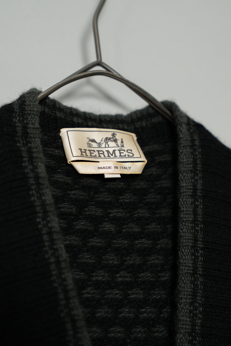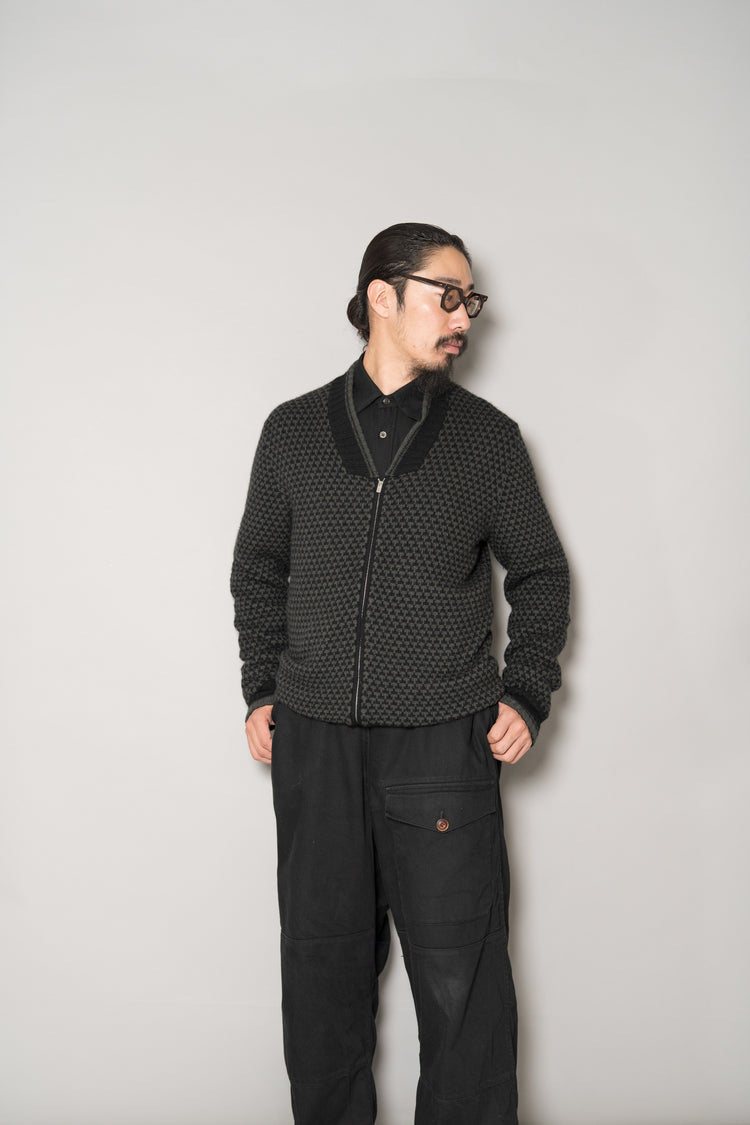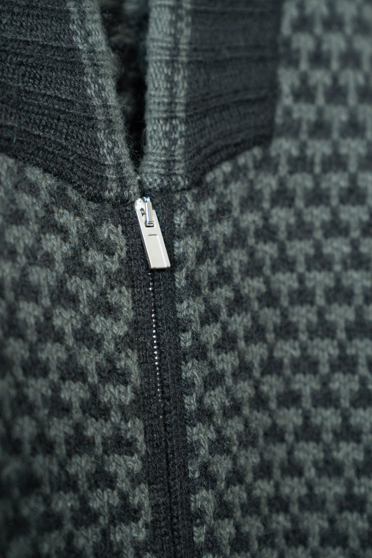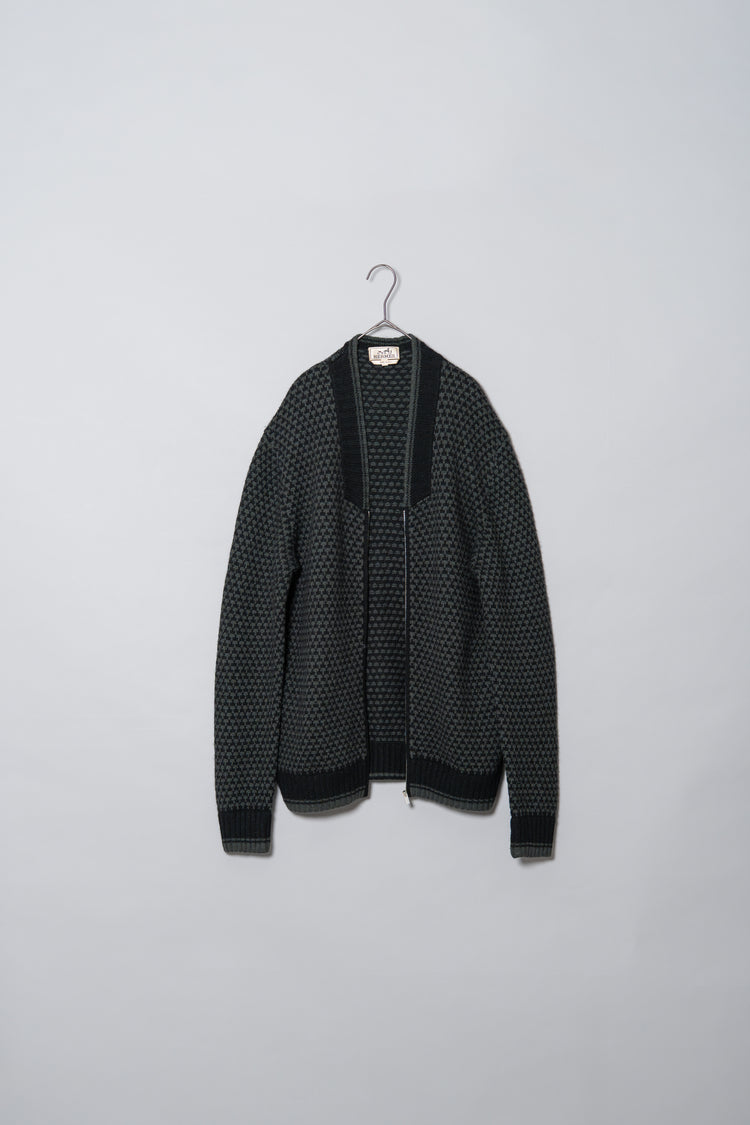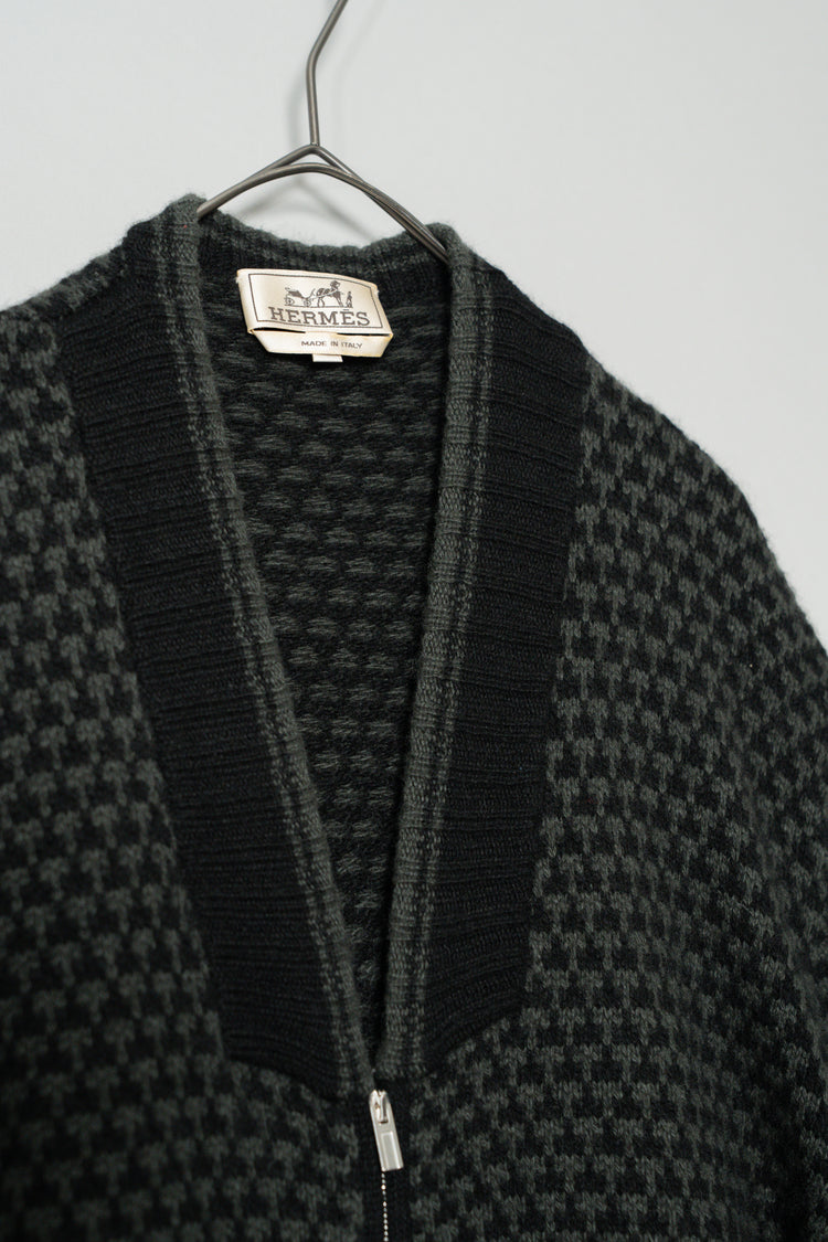 HERMES Houndstooth Check Cashmere Zip Blouson