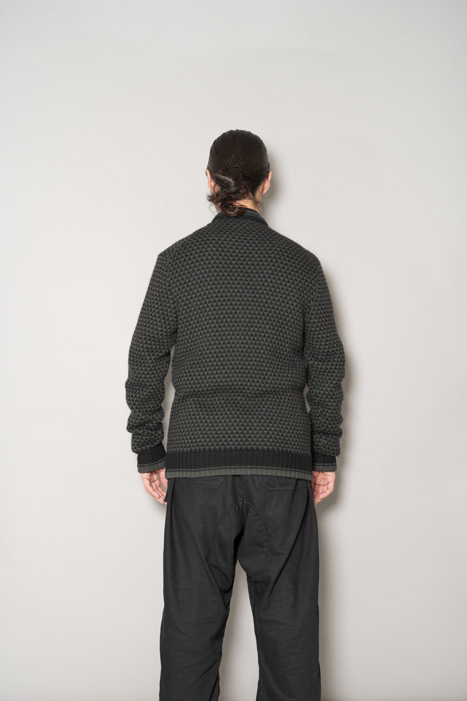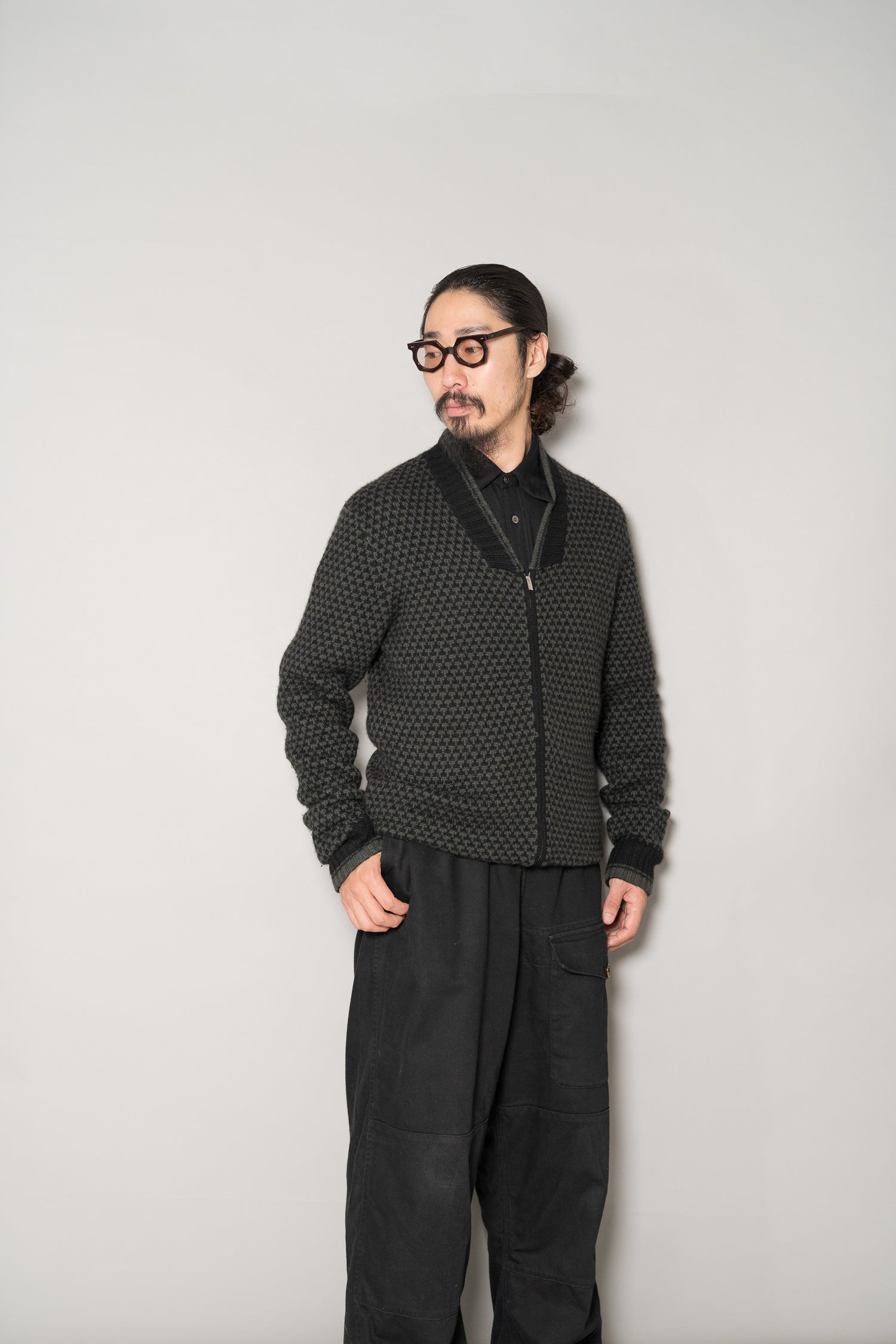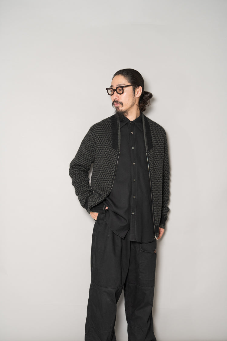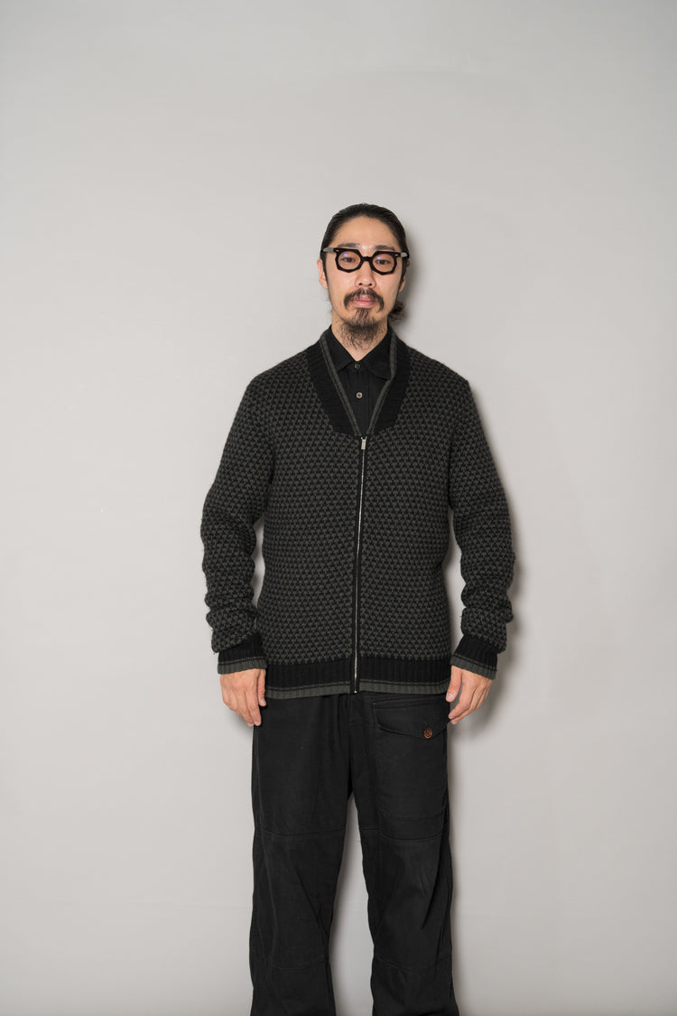 HERMES Houndstooth Check Cashmere Zip Blouson