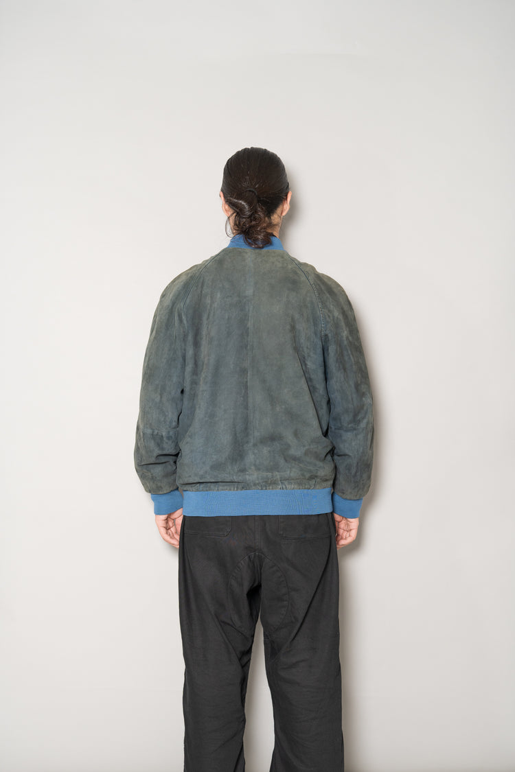 深みのあるブルーグレーの色調が印象的なこちらのブルゾンは、エルメスのアトリエが誇る最高峰のクラフツマンシップを感じさせる一着です。表地には柔らかく鞣されたラムスキンのスウェードレザーを採用し、着る人の身体に沿うように優しく馴染んでいきます。退色したような表情は、まるで時間をかけて自然に風合いが育ったかのような味わいを持ち、ビンテージならではの奥行きを感じさせます。表面のわずかなムラ感や陰影は、素材そのものが持つ生命力を映し出しており、ひとつとして同じ表情を持つものはありません。