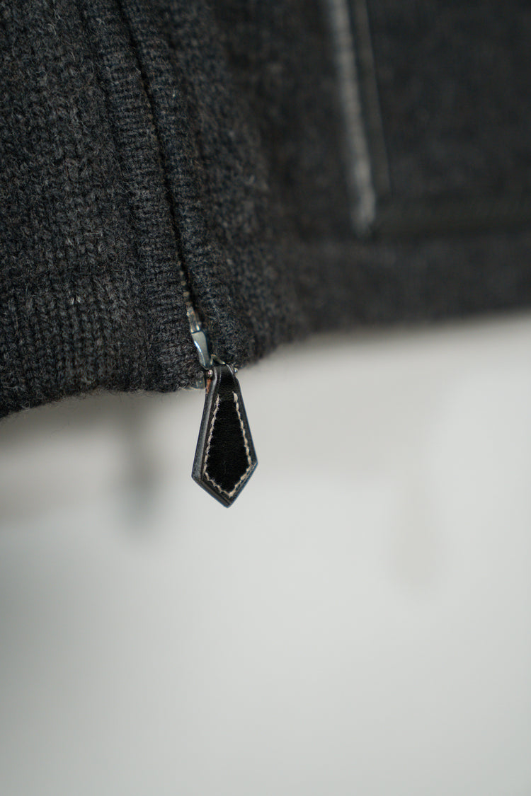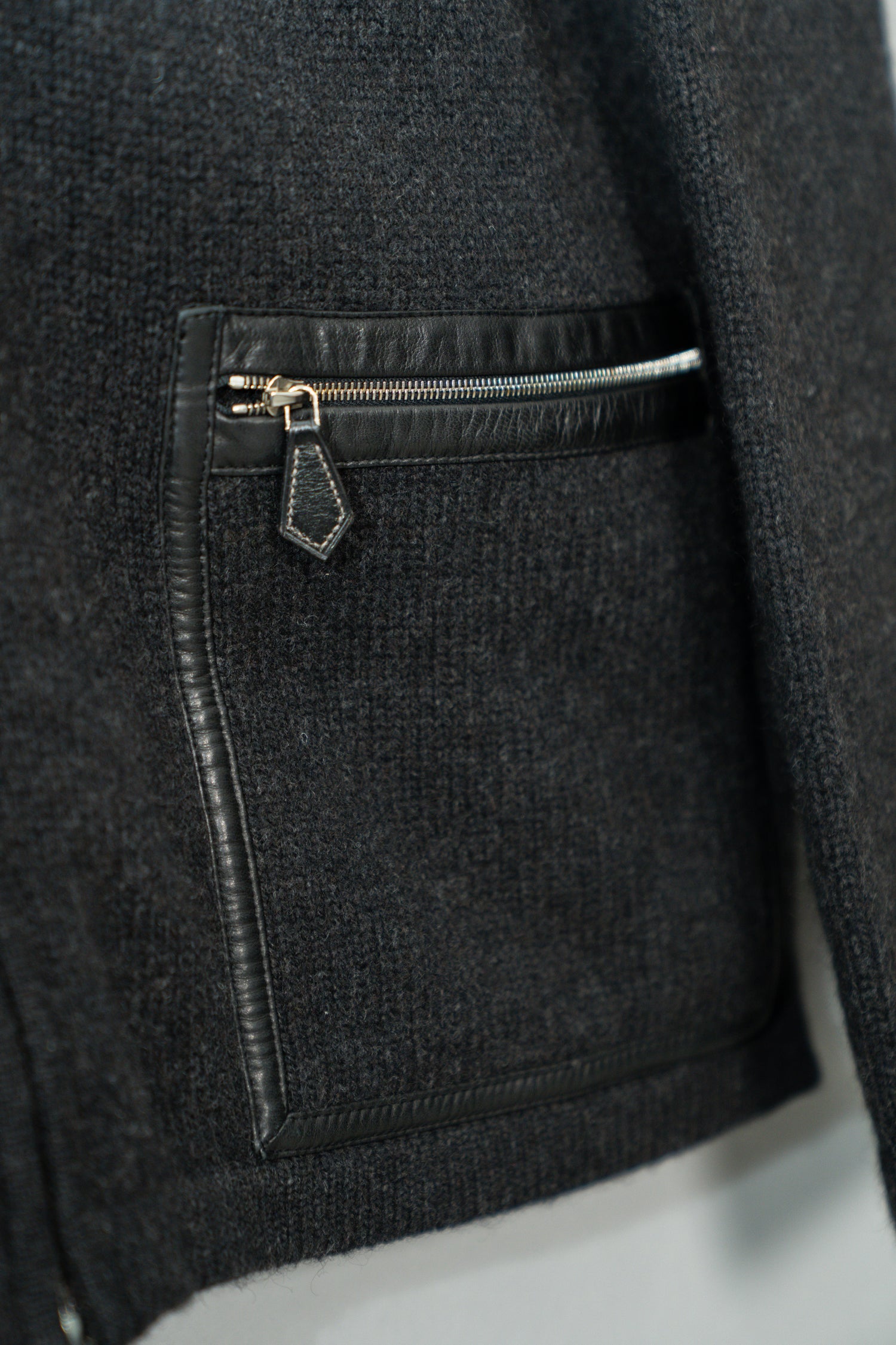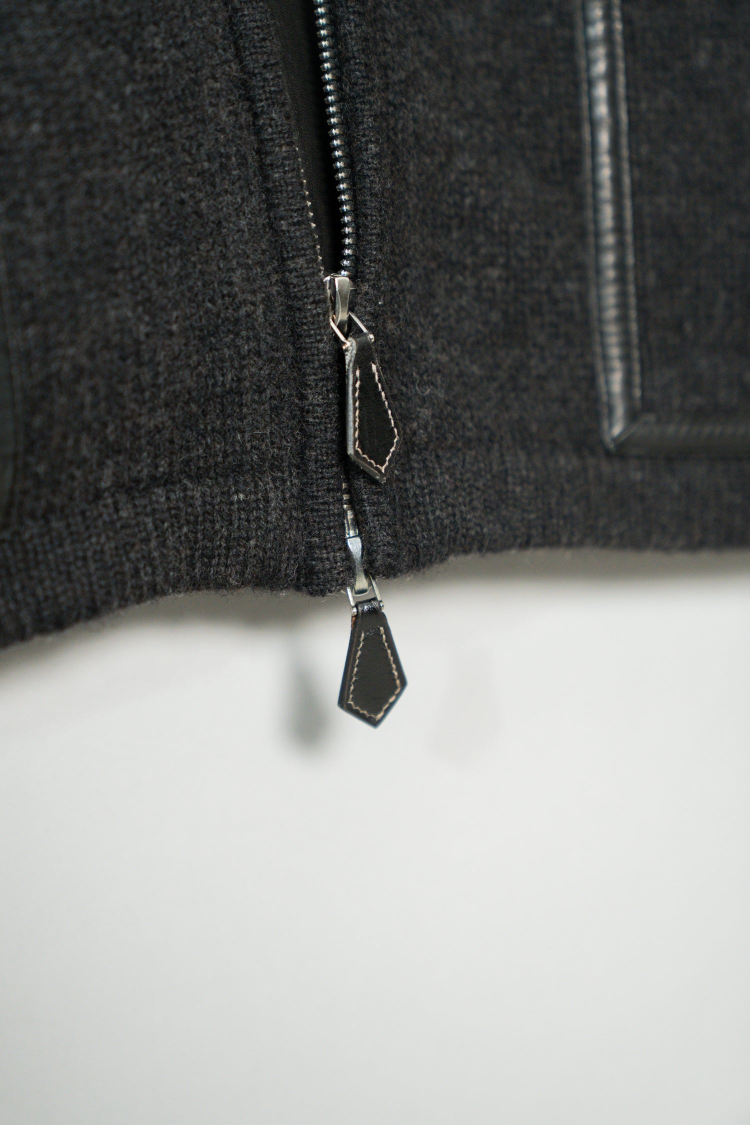 HERMES Leather Trimmed Double Zip Yak Wool Drivers Knit
