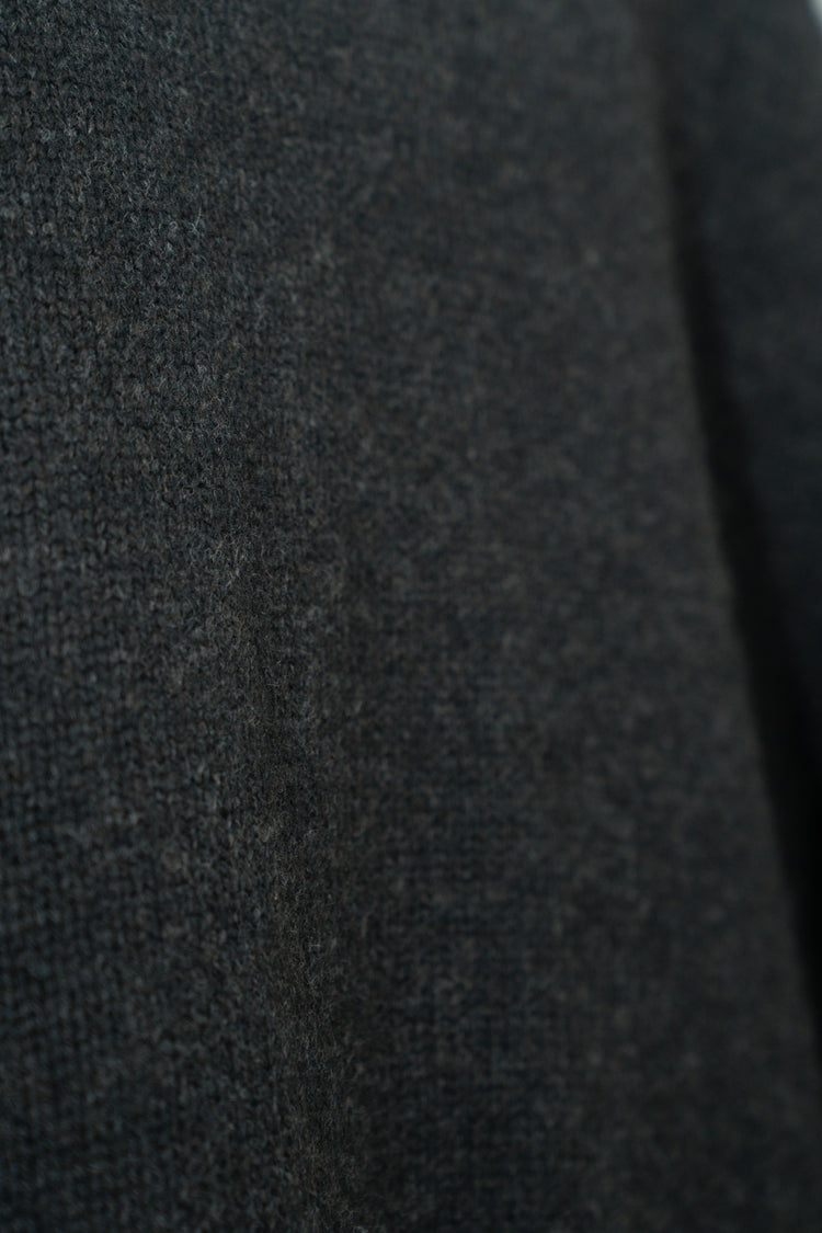 色は、深みのあるチャコールグレー。光の加減によって表情を変える上品なトーンで、ブラックのような重さはなく、それでいて確かな存在感があります。日常の装いに馴染みながらも、ふとした瞬間に上質さが漂う。そんな大人のためのニュートラルカラーです。