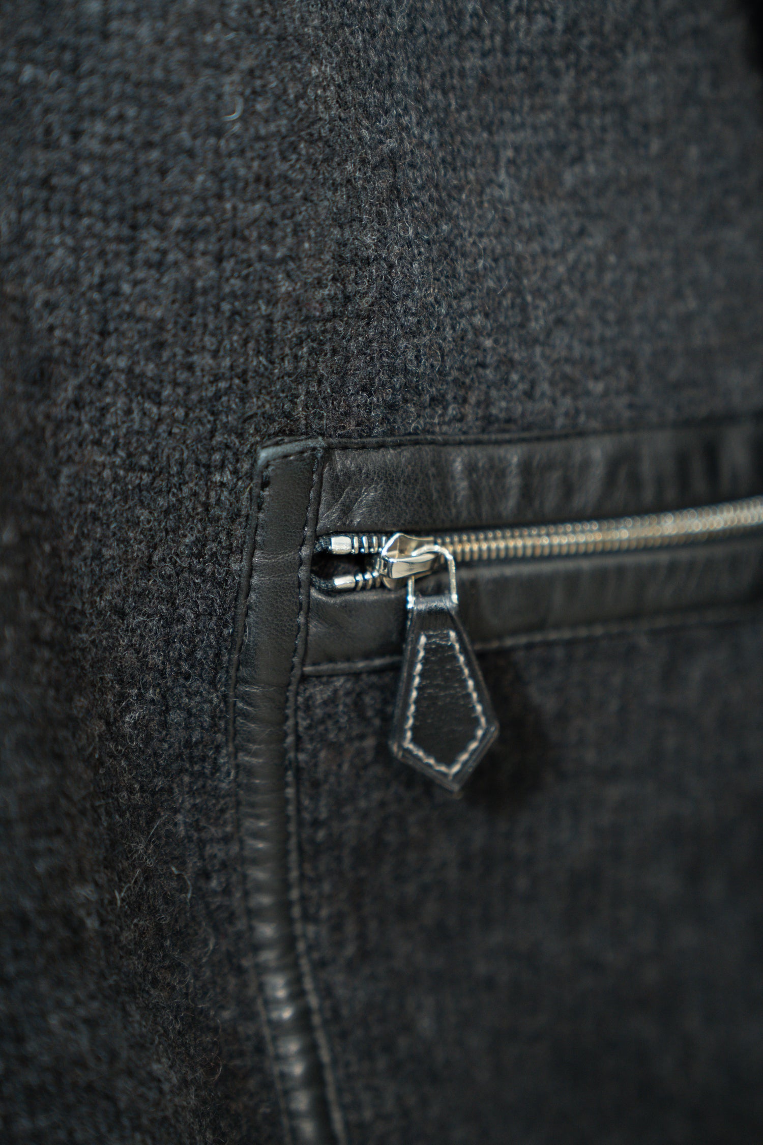 時代やトレンドに左右されない、永く愛せる一着をお探しの方へ。このHERMES Leather Trimmed Double Zip Yak Wool Drivers Knitは、まさに“今のあなたにふさわしいヴィンテージ”です。