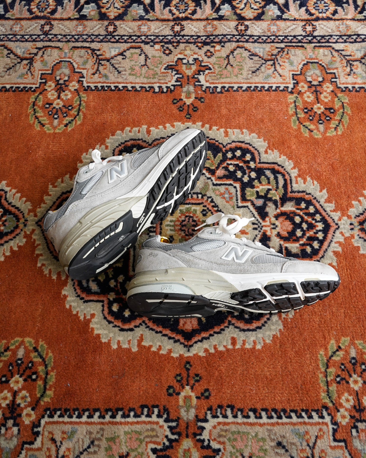 993は、トゥパーツのメッシュが大きく、ヒールに星条旗がデザインされています。992でも定評のあった履き心地をアップデートさせるため、ニューバランス独自のクッショニング構造であるABSORB DTS(アブゾーブDTS)を初採用。