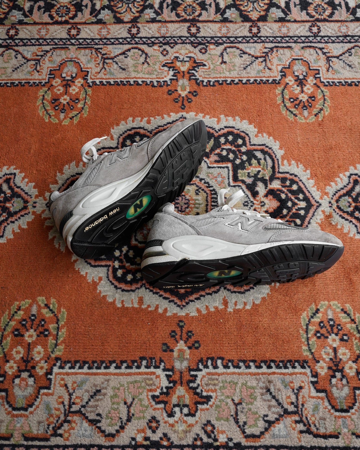 より多くのアッパーピースを組み込み、現在人気のある多くのニューバランスモデル象徴的なデザイン要素となっている、フォアフット・アンダーレイピースを導入したことで、991v1のクラシックなデザインから大きく舵を切ったモデルです。