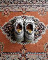 トゥの部分はほどよく丸みを帯びたプレーントゥ。そこに異素材が組み合わさった印象的なトゥボックスデザインを落とし込んでいる。ボトムスの先から覗くユニークなデザインがニューバランスならではのレトロな雰囲気を醸し出す。コロンとしたフォルムで足元にボリューム感をプラスできる1足。太めのパンツやデニム、スラックスなどとも高相性でさまざまなスタイルとマッチしてくれる優秀アイテム。