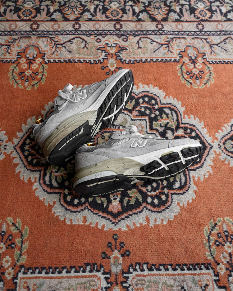 993は、トゥパーツのメッシュが大きく、ヒールに星条旗がデザインされています。992でも定評のあった履き心地をアップデートさせるため、ニューバランス独自のクッショニング構造であるABSORB DTS(アブゾーブDTS)を初採用。