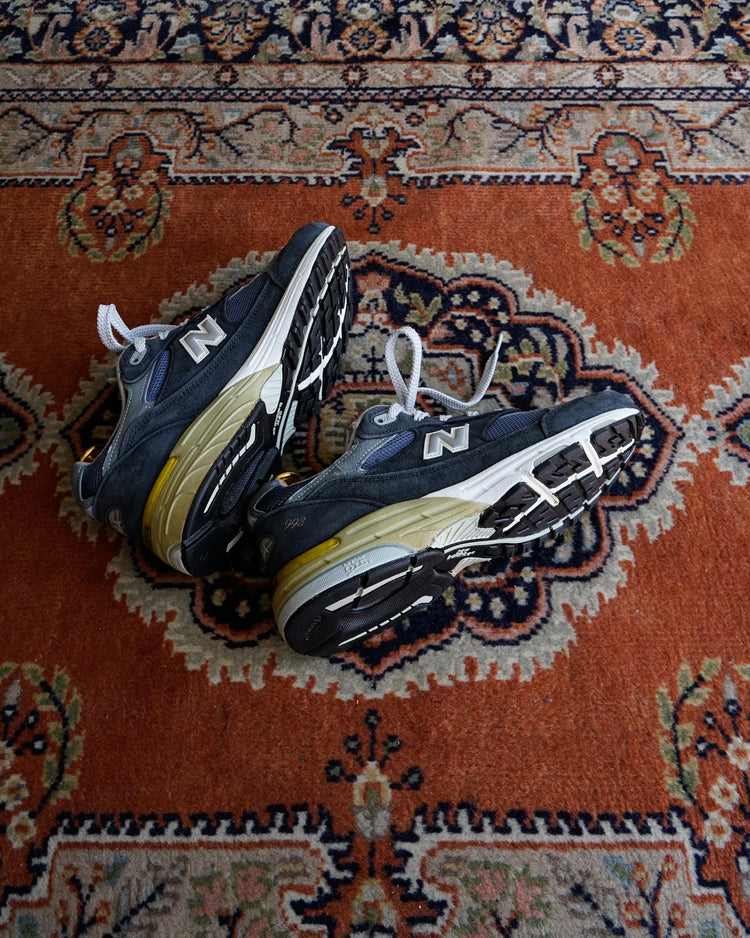 993は、トゥパーツのメッシュが大きく、ヒールに星条旗がデザインされています。992でも定評のあった履き心地をアップデートさせるため、ニューバランス独自のクッショニング構造であるABSORB DTS(アブゾーブDTS)を初採用。
