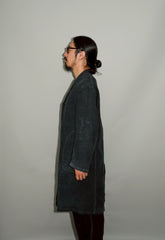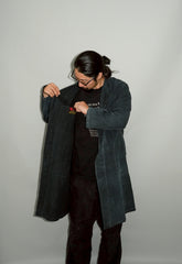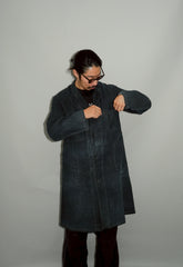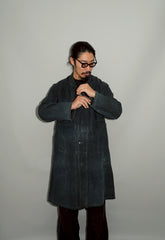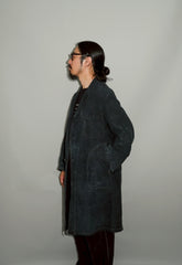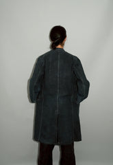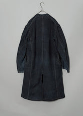 さらに、現存数の少なさも特筆すべき点です。1930〜40年代という限られた時代背景、さらに農村や市場といった過酷な現場で日常的に酷使された衣服であるため、ほとんどの個体は破損や退色、修繕を繰り返して現代まで残ってきました。結果として、今日市場に出回るものの多くは強いダメージを抱え、色が抜け切った状態のものが大半です。その中で、本品のようにコート型かつ色残り良好な個体は、ヴィンテージ市場でも極めて珍しく、コレクションピースとしても高い評価を受ける一着となります。