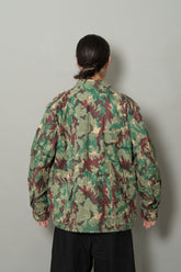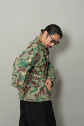 1960年代、スペイン軍によって採用されたM-60型の空挺部隊用ジャケットは、独自の「Boscosos(ボスコソス)カモフラージュ」を纏った非常に珍しい一着です。Boscososとは「森」を意味し、その名の通り森林地帯に適応することを目的としたパターンで、スペイン軍独自の迷彩史を象徴する存在となっています。ミリタリーマニアの中でも知る人ぞ知るカモフラージュであり、現存数が少ないことからコレクション市場でも高い評価を受けています。