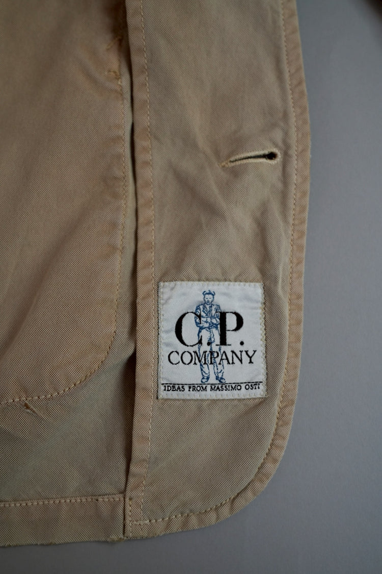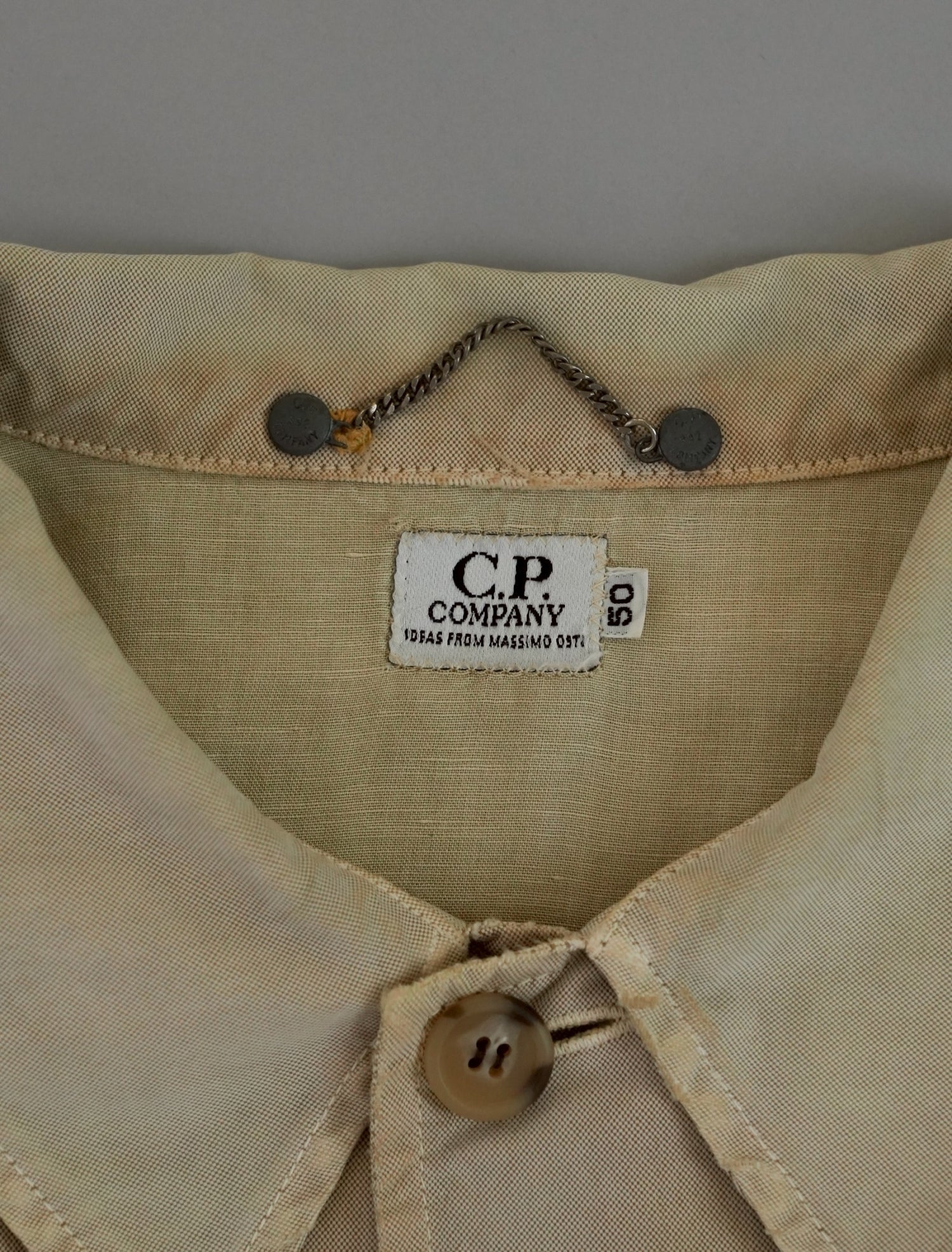 特にマッシモ・オスティ期のC.P. Companyは、今日の市場においても非常に貴重であり、コレクターズアイテムとして高い評価を受けています。後年のプロダクトとは一線を画し、オスティの思想とクリエイティビティがダイレクトに反映されたプロダクトは、単なるファッションを超えてデザイン史の一部として語られる存在です。その中でもコンディション良好なジャケットは数少なく、本品のような状態で残っていること自体が奇跡に近いといえるでしょう。