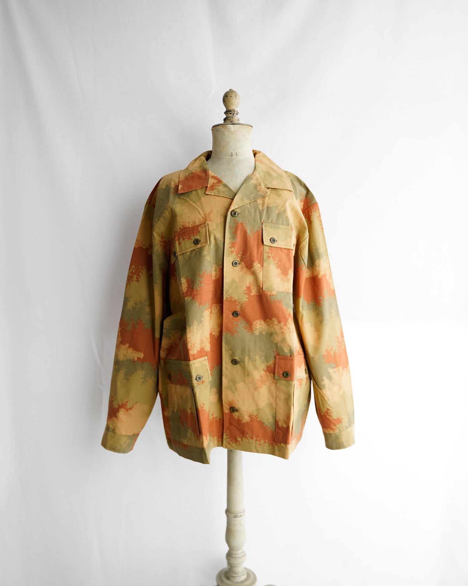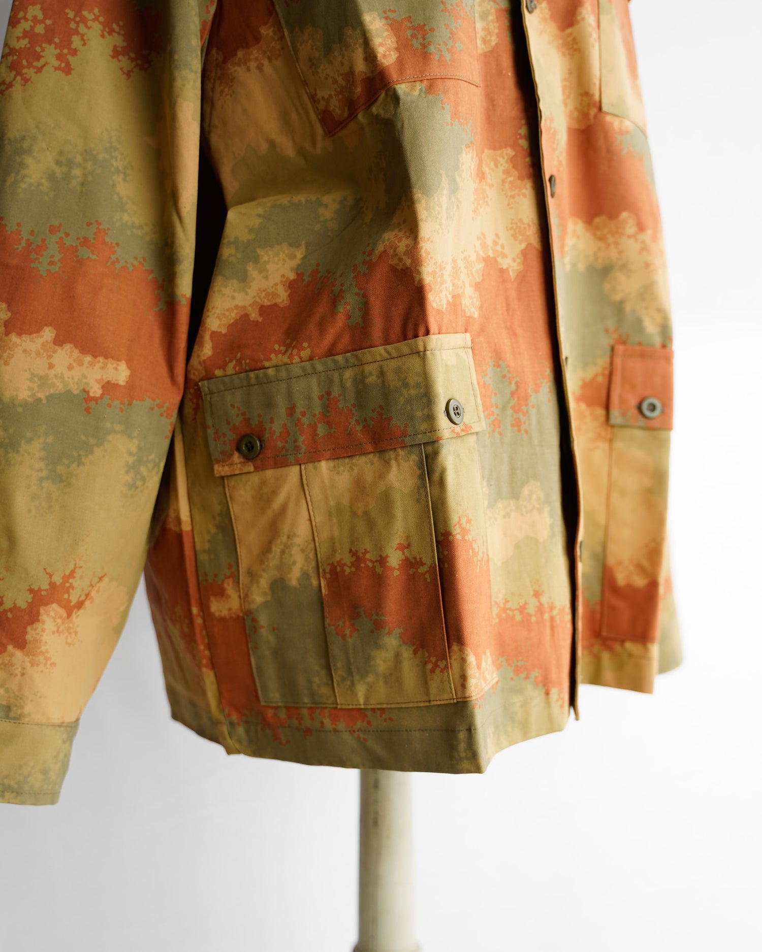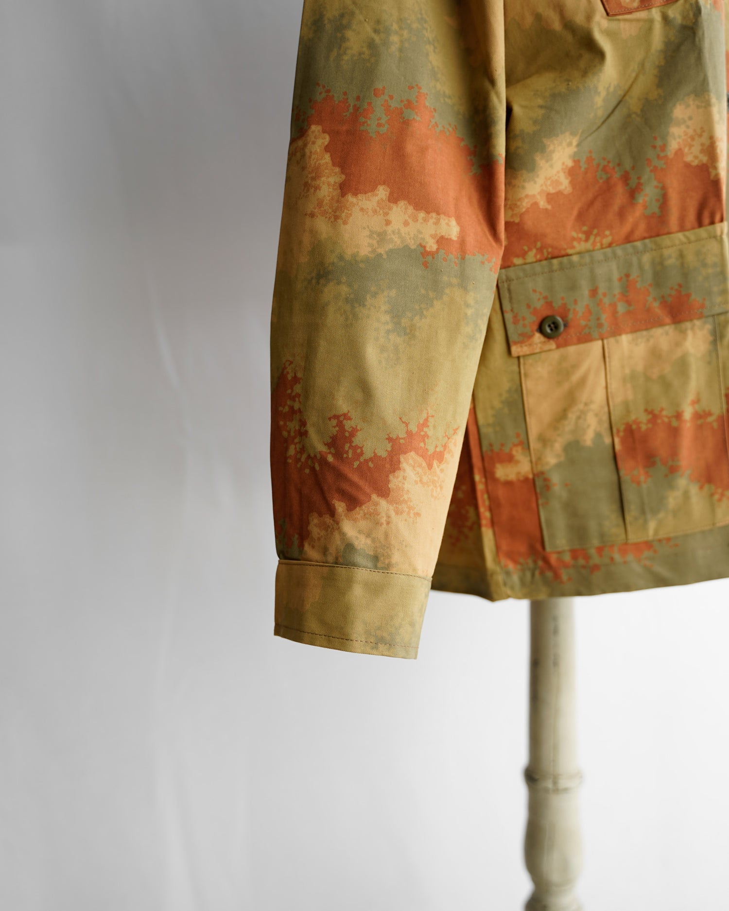 非常に目を惹く、美しい色合いのカモフラージュ柄で、カモ柄という概念を超えて評価されるべき逸品かと思います。