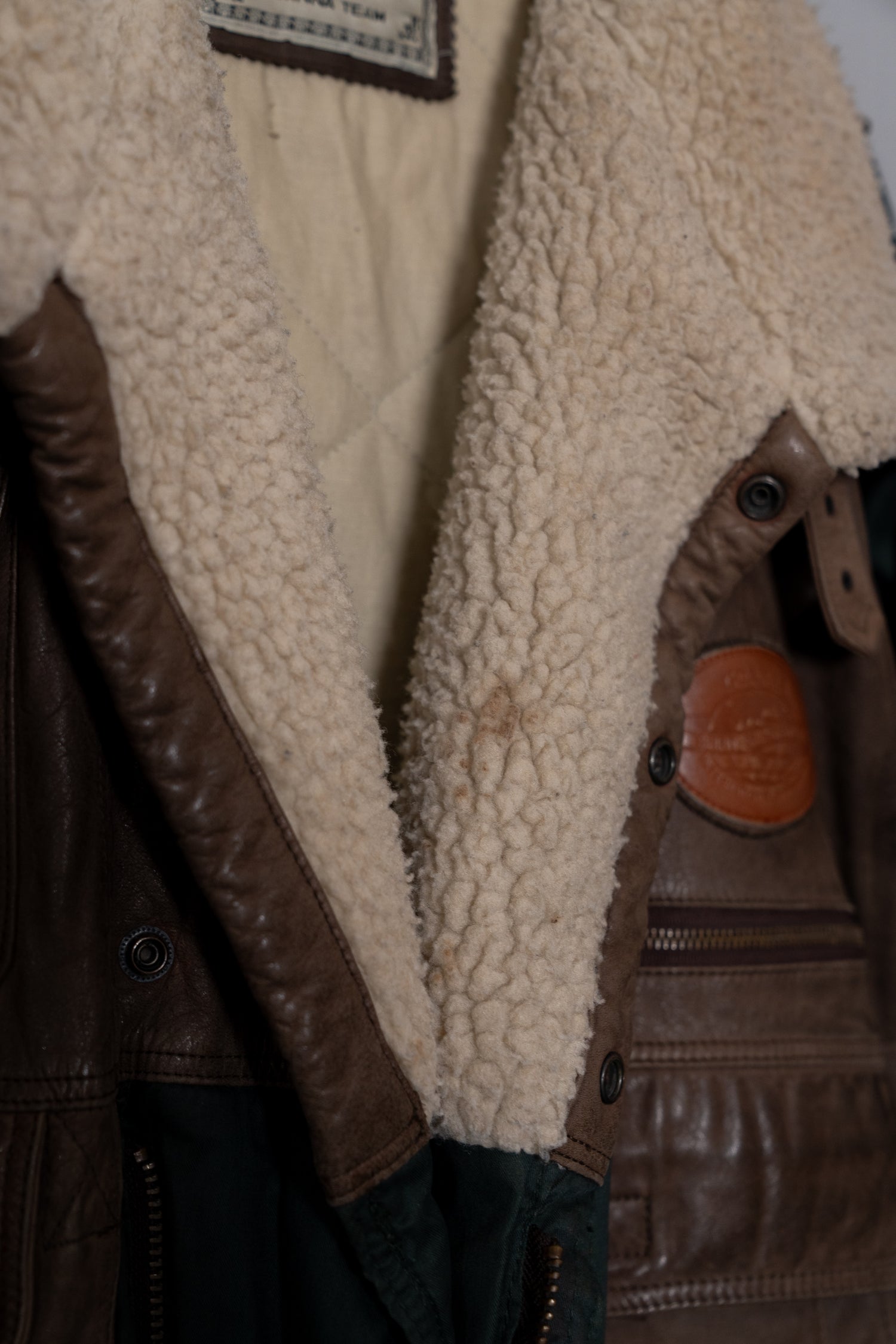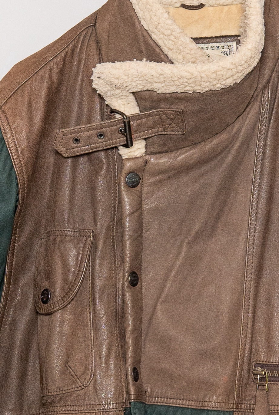 1990s GOANNA Leather & Nylon Boa Aviator Jacket