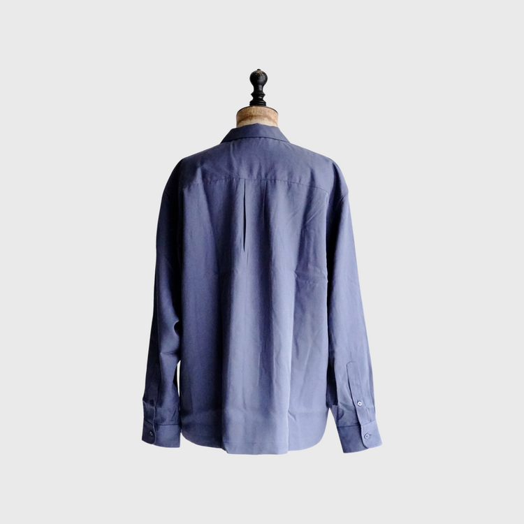 無駄を省いたミニマルなデザインが魅力的な本作。2フラップチェストポケット、オープンカラーのボタンオープンフロントの仕様。オーバーサイズのため、様々な体格の方に着用いただけます。タフな生地感でありながら、適度なツヤ感もあるリヨセルツイルを採用。一枚着から、重ね着まで幅広く着用いただけるお奨めアイテムとなっております。