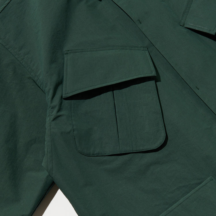 リサイクルナイロンコットンを塩縮加工によりハリ感のあるドライタッチに仕上げたタフタ生地を使用しています。
