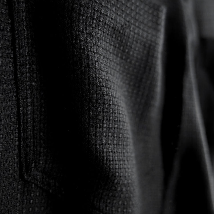 23AWシーズンでもリリースされた、ワイドフレアシルエットのトラウザーになります。今季はレーヨンリネンの混紡糸を使用した、メッシュ素材を使用しています。 ⁡ 非常に軽さがあり、とても珍しい組織(メッシュ)の素材をトラウザー型に落とし込みました。リネン特有の奥行きの有る杢調の色合いが組織にバランス良く溶け込み、他に無い表情を生み出しております。軽い落ち感のある綺麗なシルエットなので、一度着用頂けたらパターンの良さを感じて頂けると思います。