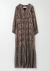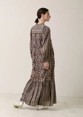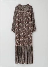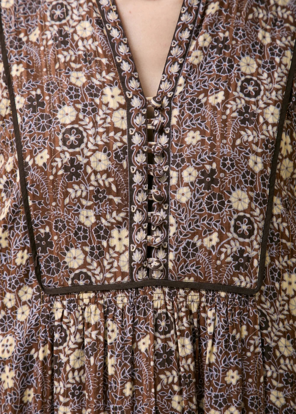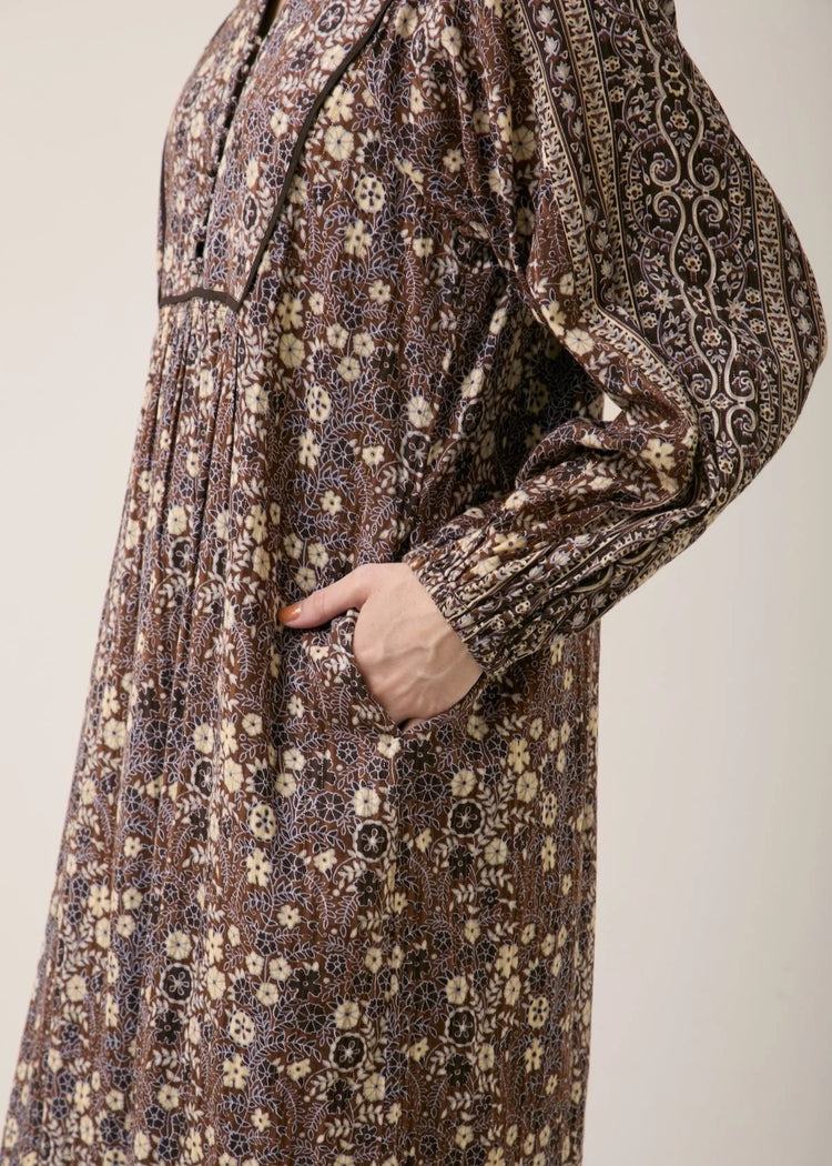 Sara mallika Cotton Jacquard Flower Print Yoke Dress