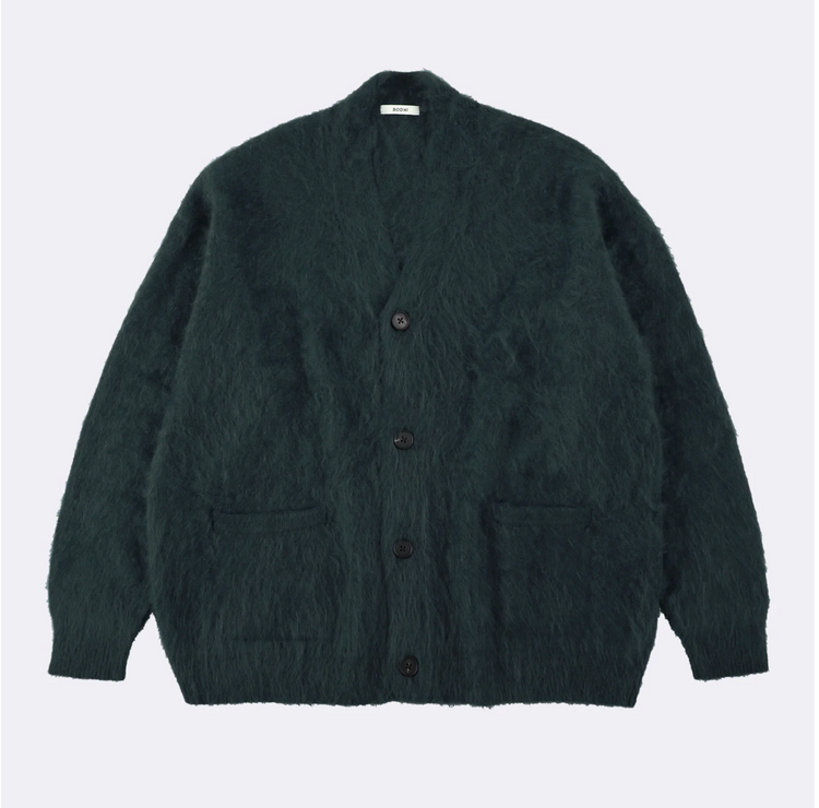特殊な加工を施しモヘア状に起毛させたカシミヤ100%のカーディガン。 クラシックなボックスシルエットに、締め付けの少ない幅広なリブを取り付け、少しアクセントと実用性を備えたスリットポケットを採用。着用しても毛が抜けることがありません。 ボタンは水牛を使用し、使い込むことに艶が出てきます。