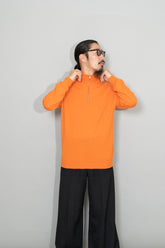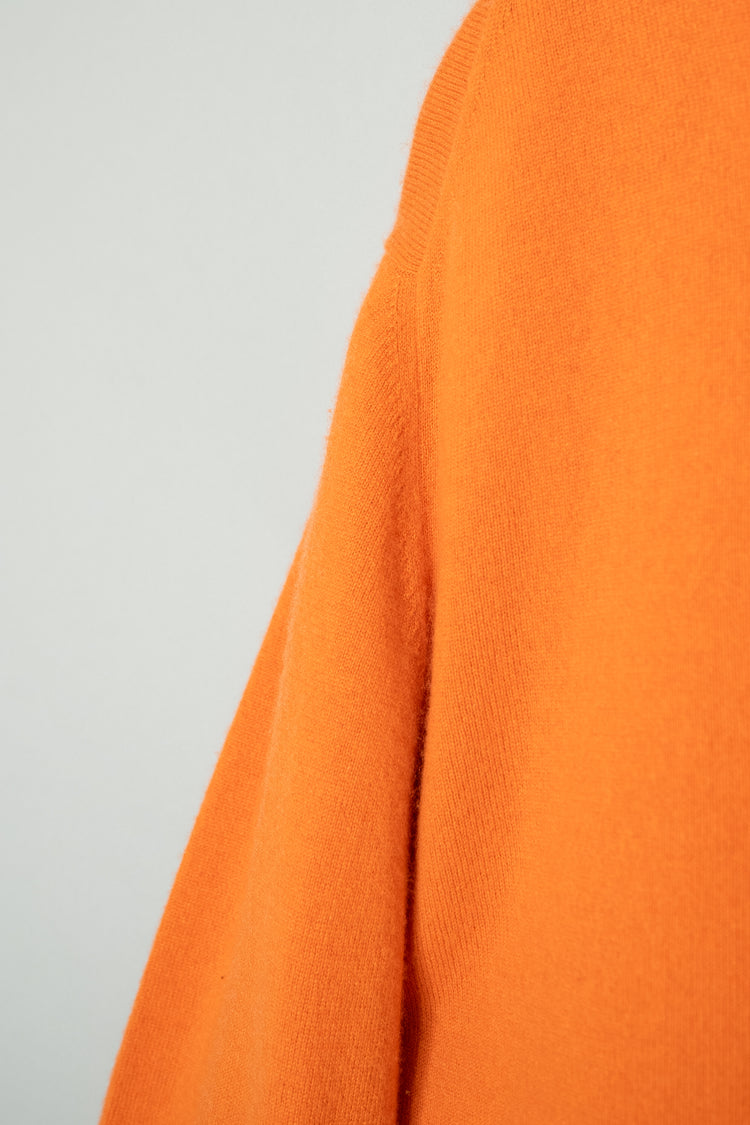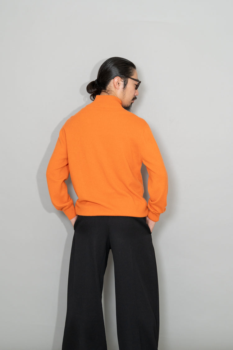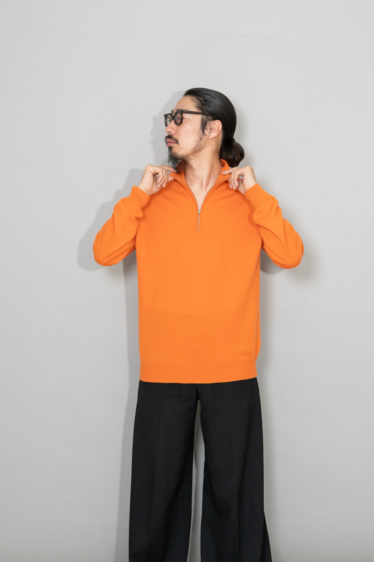 本商品は、エルメスを象徴するカラーである エルメスオレンジ のカシミヤ100%ハーフジップニット。鮮やかでありながら嫌味のない上品な発色は、名門メゾンだけが成し得る独自の染色技術によって生み出されたものです。エルメスオレンジは、ブランドの歴史的な象徴であり、元は第二次世界大戦後に採用されたボックスカラーから誕生。太陽、エネルギー、幸福を象徴するとされ、ブランドの情熱と革新性を伝える色として愛されてきました。