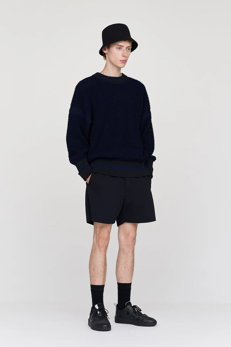 ワッフル編みのテクスチャが特徴のプルオーバー。ゆったりとしたシルエットで、透け感を活かしたスタイリングが楽しめます。ドロップショルダーがリラックスした印象を与え、快適な着心地です。