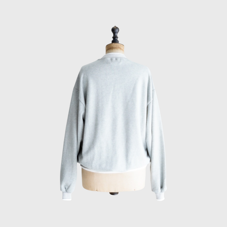 オーバーサイズのボーダーリブスウェットクルーネック。ふんわりと柔らかく肌触りの良い裏毛パイルを使用しています。身体から綺麗に離れる立体的なパターンで構成。たっぷりとした生地の分量感。生地厚は中肉で着用シーズンの長さも魅力的な一着◎