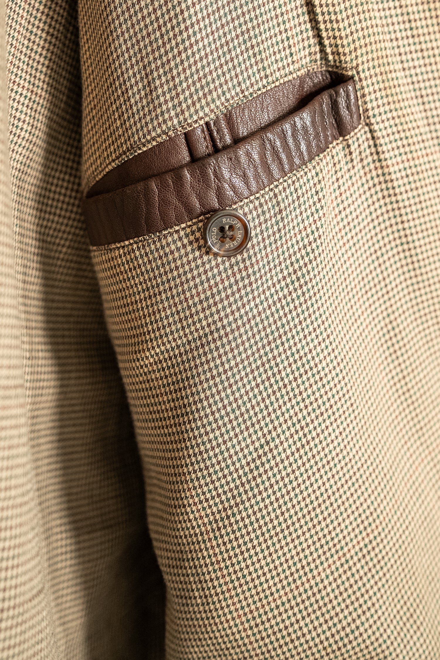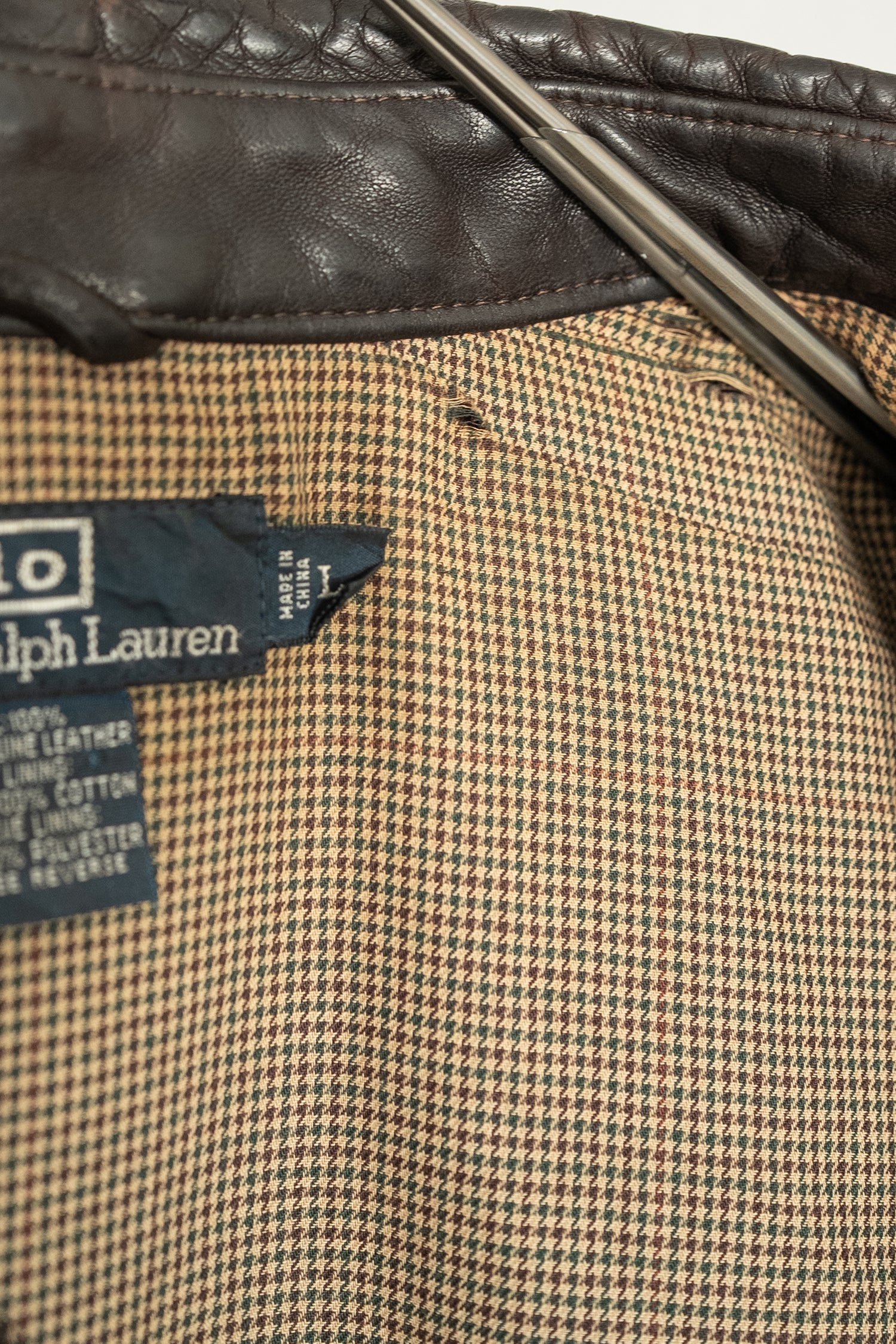 胸元には同色であしらわれたポニーロゴ。主張しすぎず、それでいて確かにラルフローレンであることを語るディテール。ライニングはトラッドな小柄チェックで、英国紳士のジャケットを思わせるクラシックな雰囲気を内側から演出します。